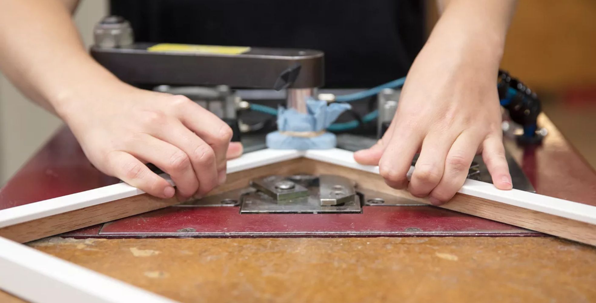 Meticulously fitting together the corners ensures a strong, smooth joint.