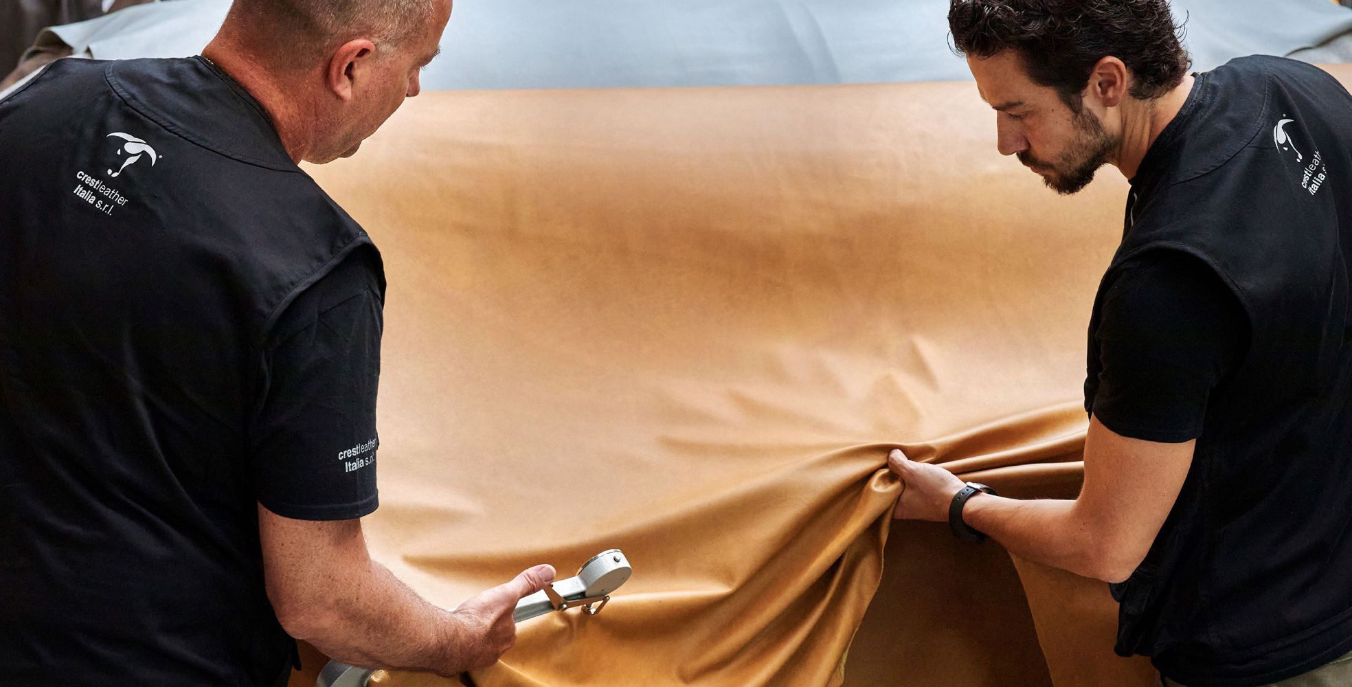 Founded in 1996, Crest Leather has grown to over 1,000 employees and is one of the world’s largest upholstery leather producers. Their mission is to respectfully transform cowhides, a byproduct of the meat industry that would otherwise be discarded, into high-quality leather using sustainable methods.