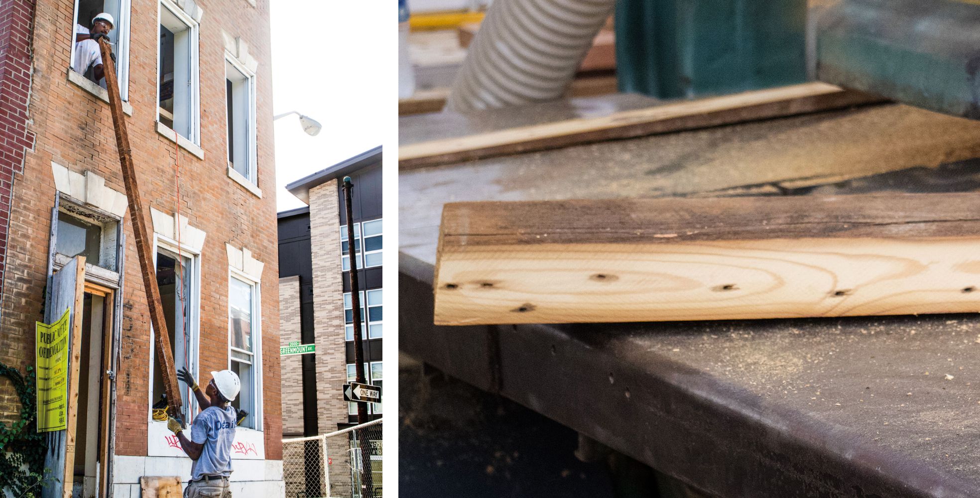 In 2018, the USDA Forest Service brought together Room & Board and Humanim, a social services enterprise, in a unique public-private partnership aimed at improving Baltimore environmentally, socially and economically. The Urban Wood Project had dual goals of opening jobs to people with barriers to employment and salvaging materials from vacant row homes, including century-old wood and marble. The USDA Forest Service originally reached out to us because of our history of sustainable practices and willingness to innovate.