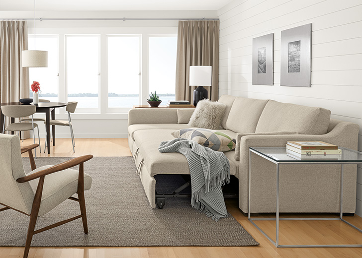 Overnight guests will feel like they’re in a luxury hotel with a Room & Board sleeper sofa. The Allston slope arm Day & Night sleeper has a clean silhouette and compact size, making it a great sleeper for smaller spaces. Guests will love the high-resiliency foam mattress.