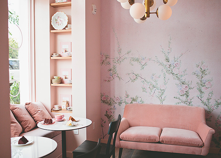 Laurel and I both grew up loving garden roses and tea parties, so my immediate touch stone was Mayfair in the spring time. All of the stores decorate with these gorgeous floral installations, and I wanted to capture that old world, London in the springtime feeling, but with modern lines. From the beginning I knew it needed to be a jewel-box. Sweet Laurel has always had this “secret garden” quality. Our only form of marketing was through word of mouth, and I wanted the space to reflect that: like stumbling into an English tea room in the middle of LA. It feels like you’re in on a wonderful secret.