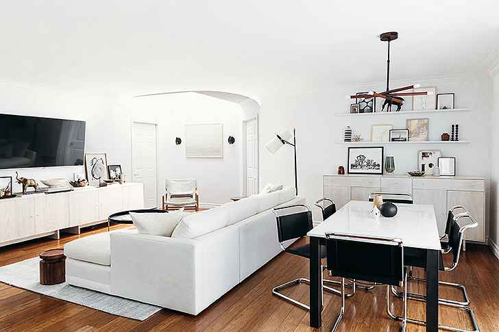EATSLEEPWEAR‘s Kim Lapides knows small spaces. Between Philadelphia, New York and LA apartments, she’s had her fair share of small square footage. She and her husband (and new baby, Otis – welcome!) are now in their first house: a 1960s single-story ranch in Huntington Beach. With help of designer and pal Anne Sage, the two turned 800 square feet into a modern, beach-inspired family pad. How did they do it? Defined zones with furniture, custom cabinets from Room & Board and a whole lotta neutrals.