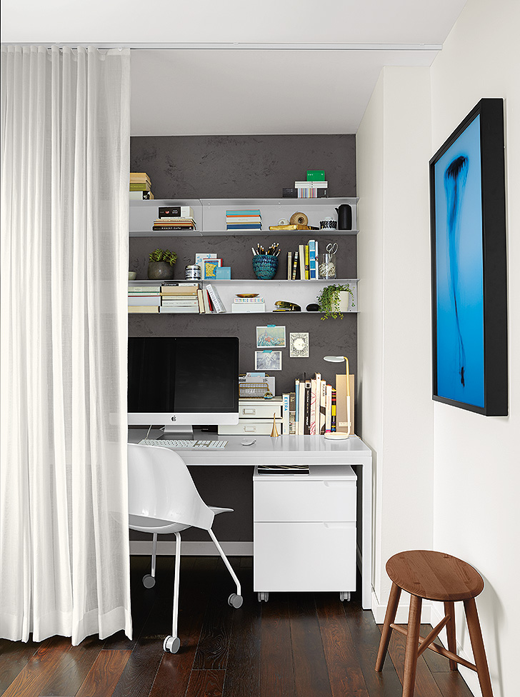 As a result, a small home office needs to satisfy many different requirements in a small footprint. We considered a few common challenges, and offer up simple solutions that are also simply beautiful in a compact workspace.