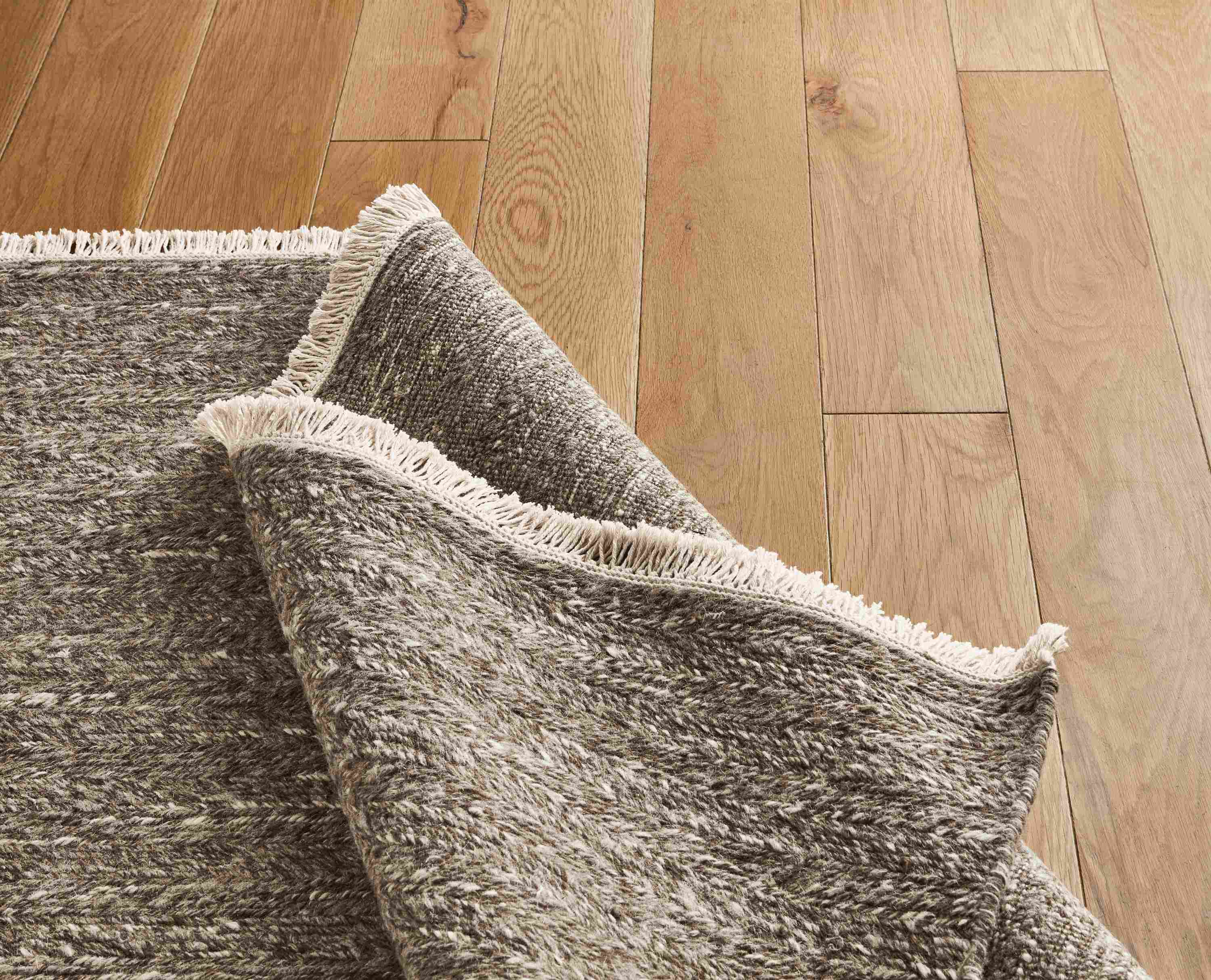 - Edge Detail: self-bound with matching yarns; ends knotted with fringe