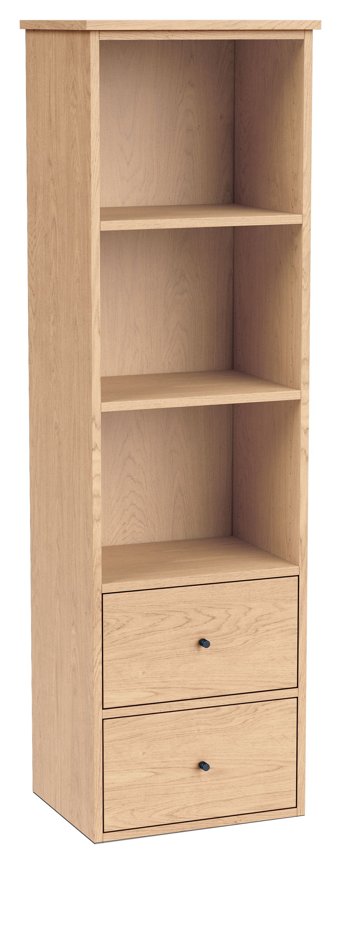 - Shelves: two adjustable wood