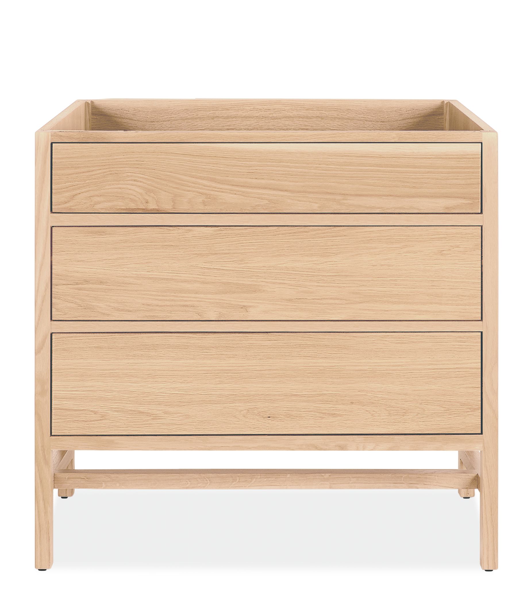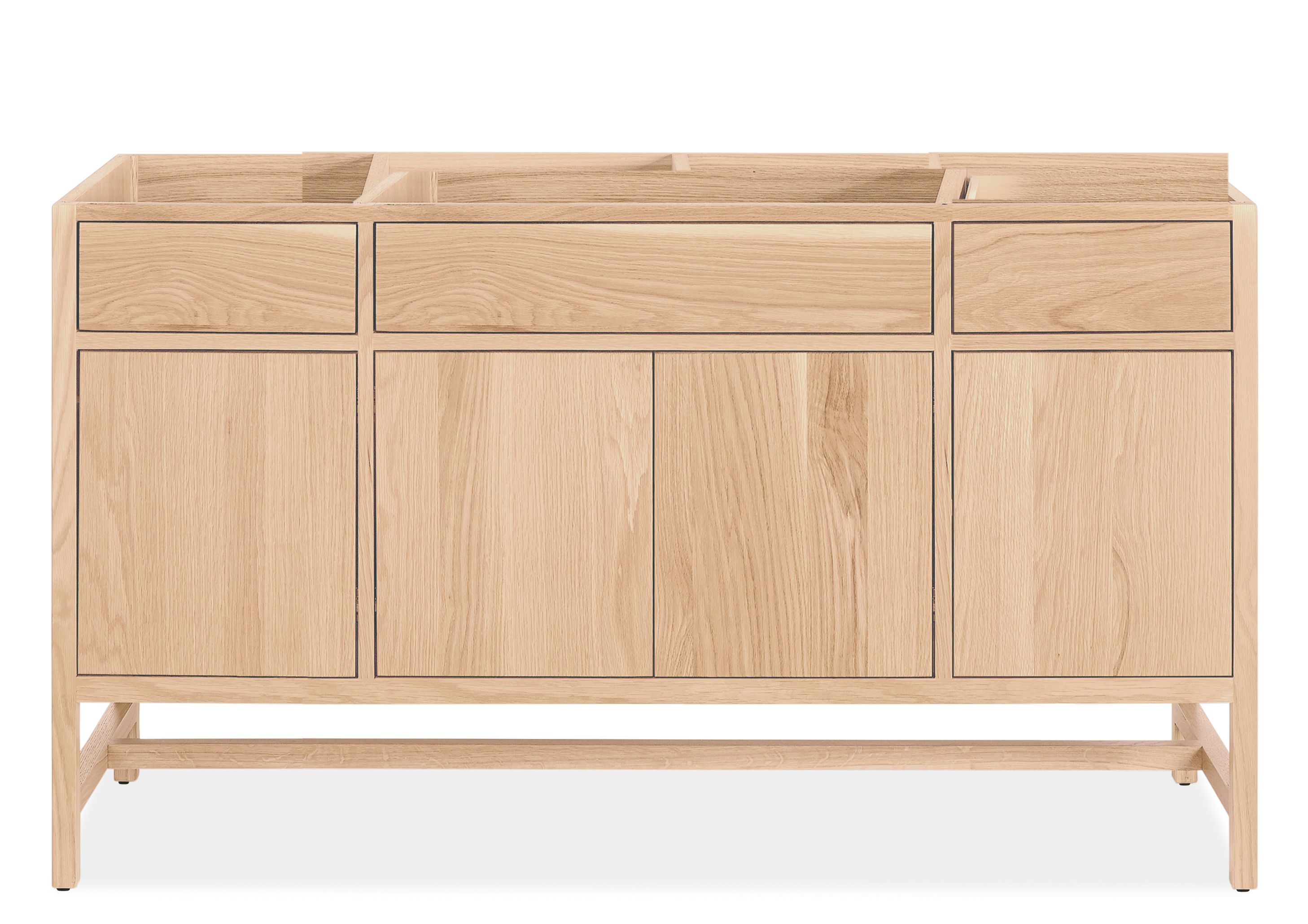U-shaped drawer box design allows space for interior plumbing under sinks
