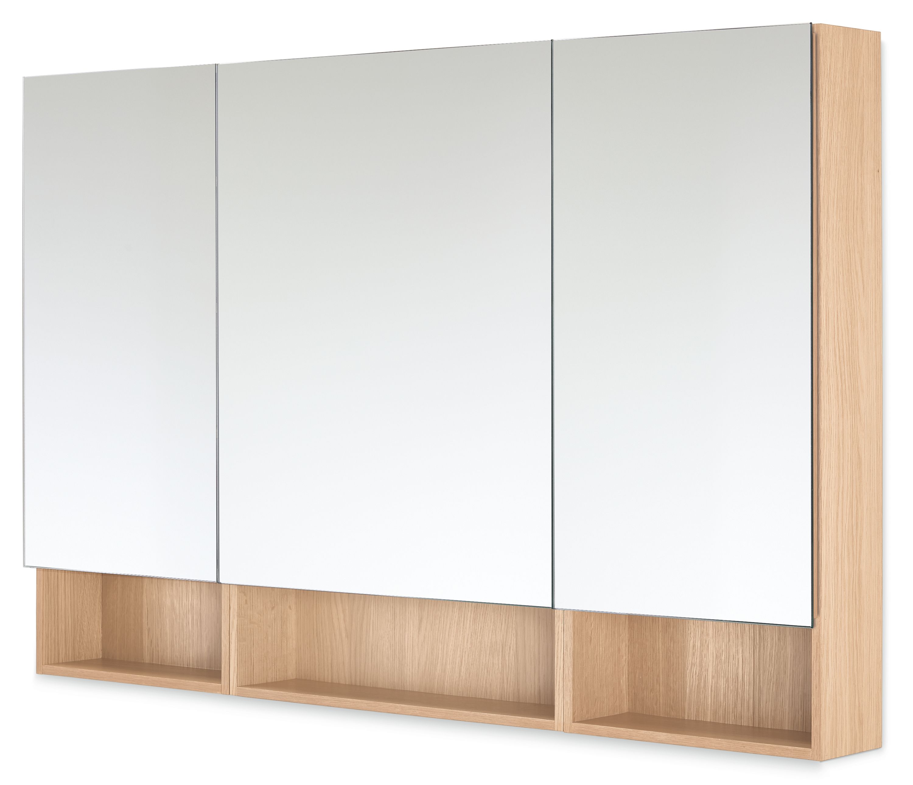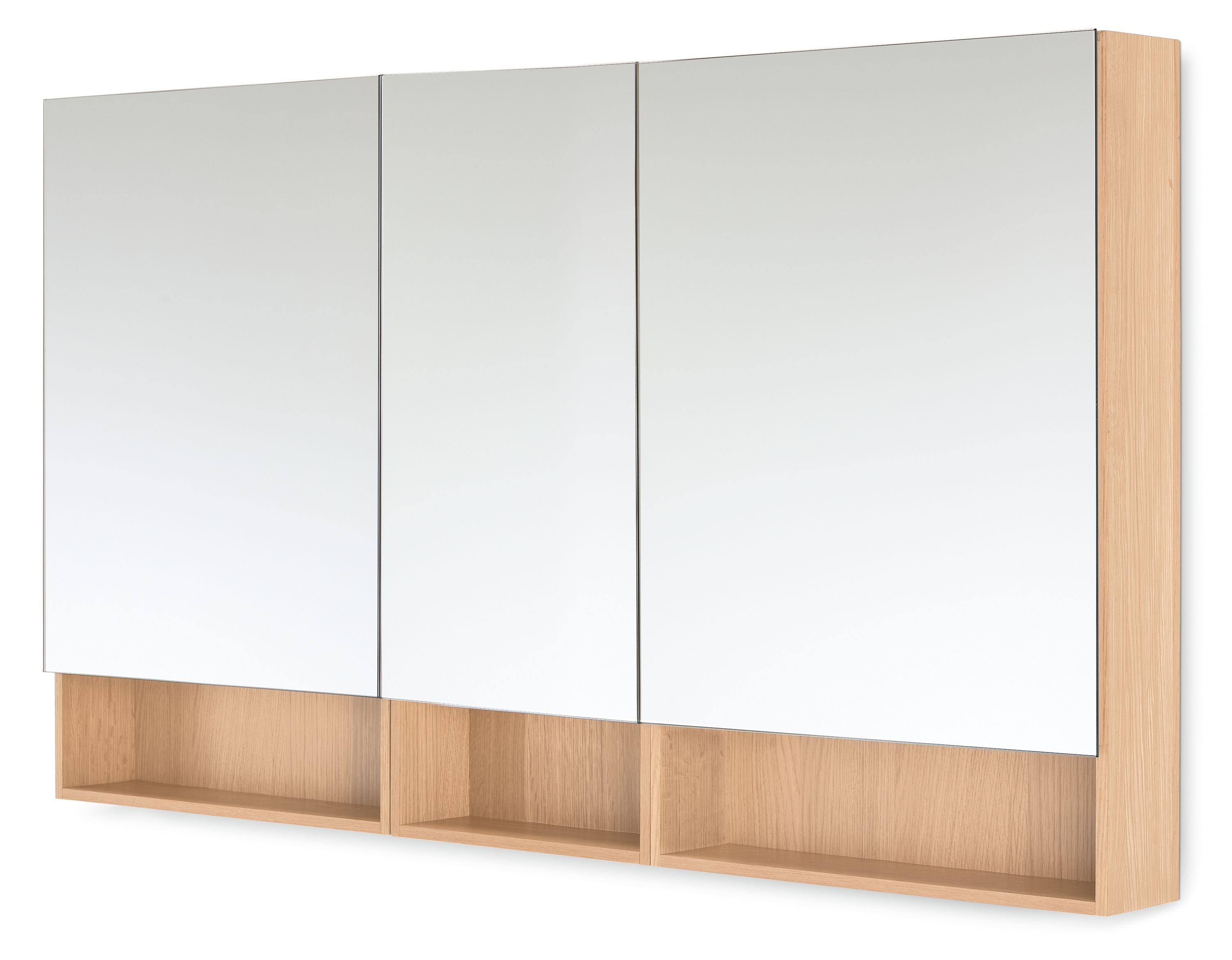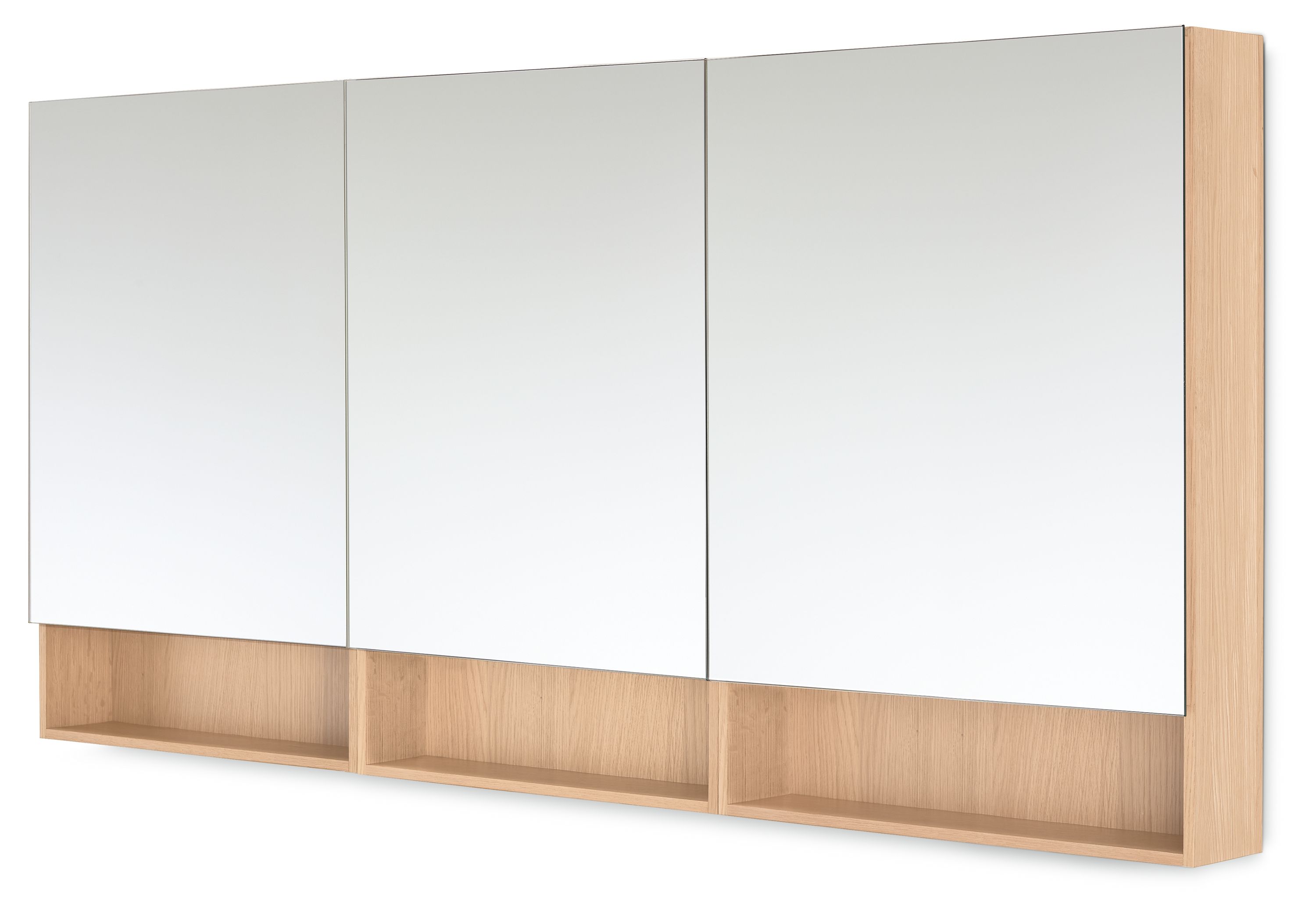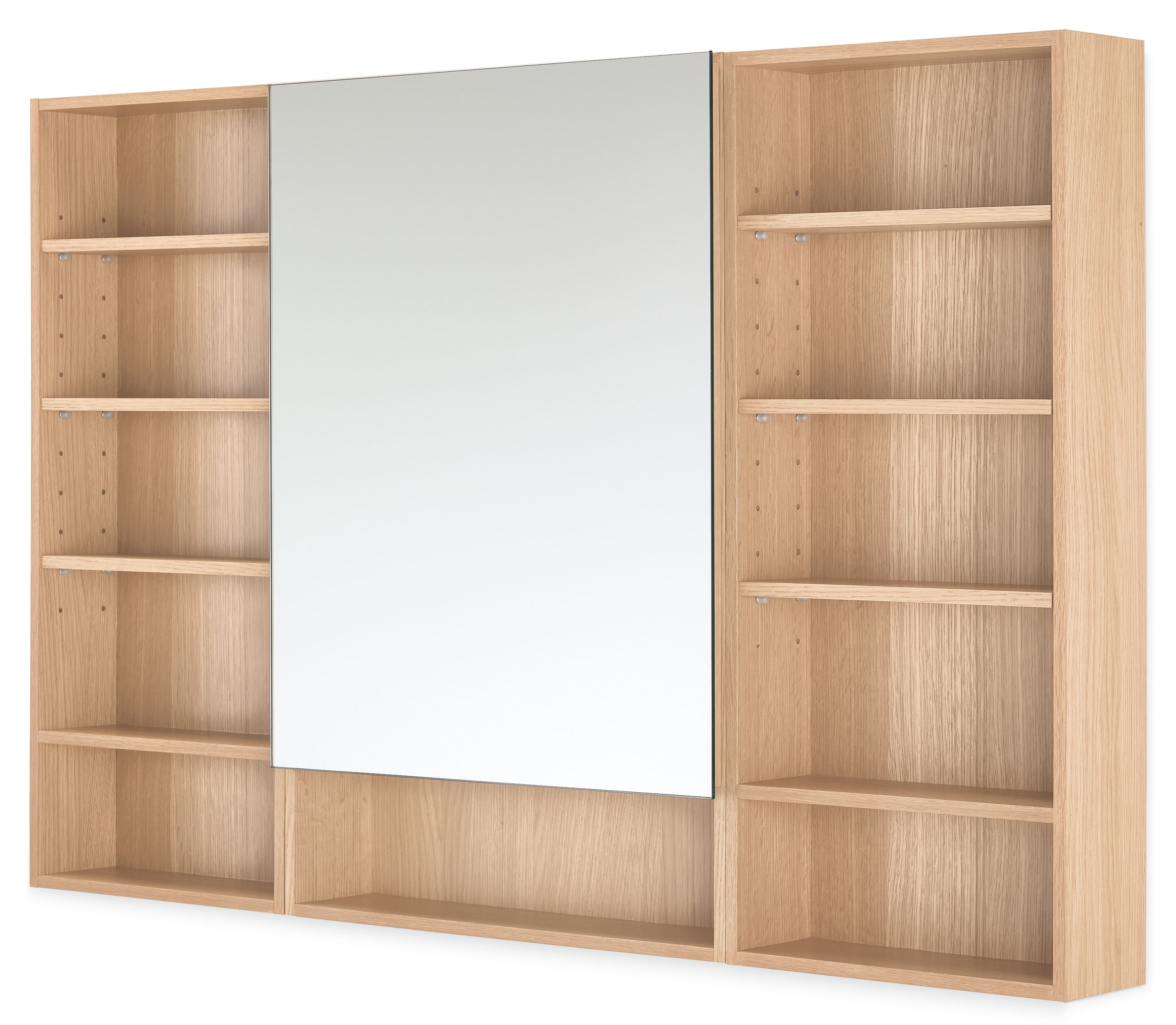 Bridger is a modern medicine cabinet set made in Vermont. Adding efficient storage to your bathroom with adjustable glass shelves, this elegant design comes in several woods to suit your space and is finished with a high-quality mirror.