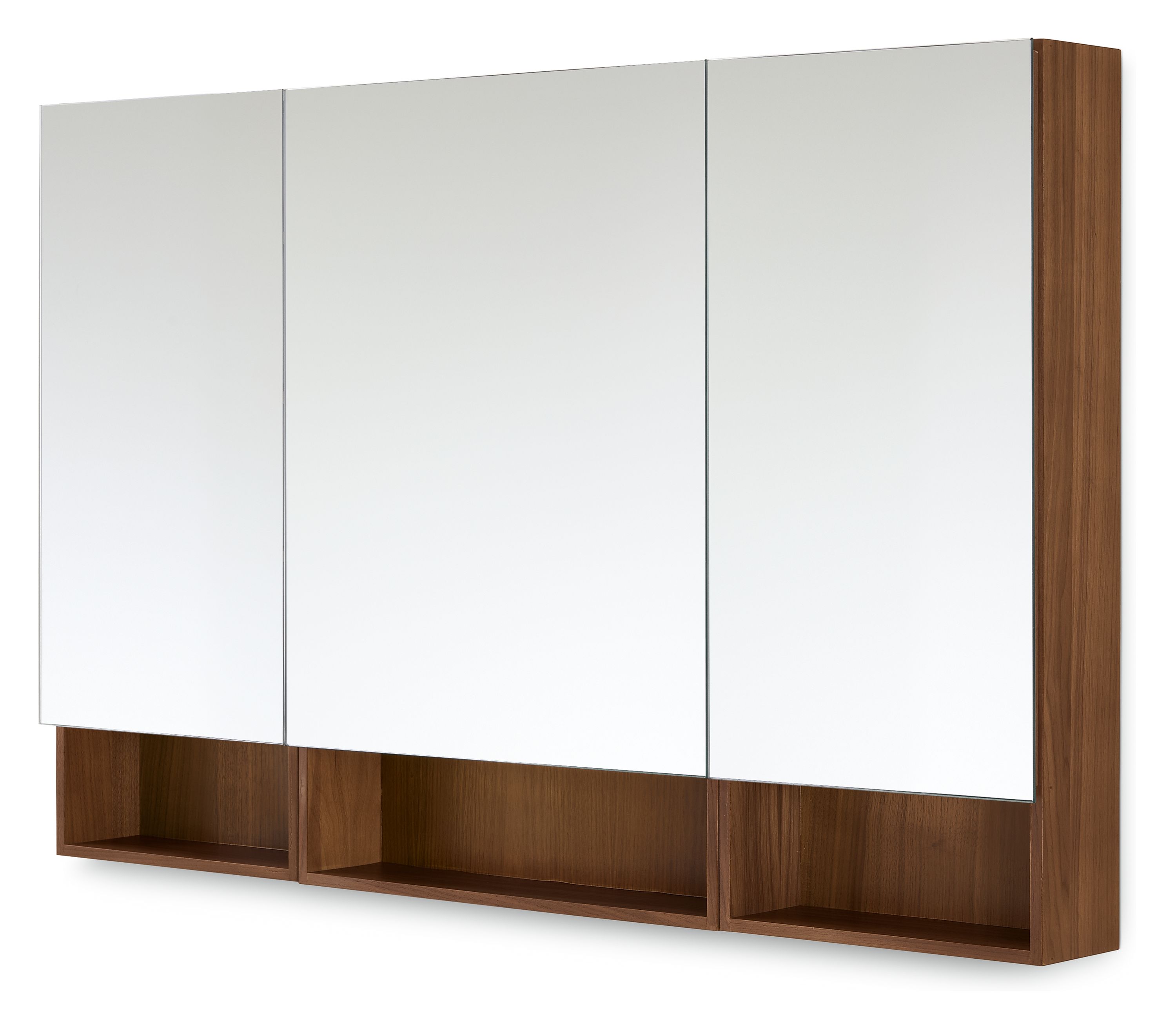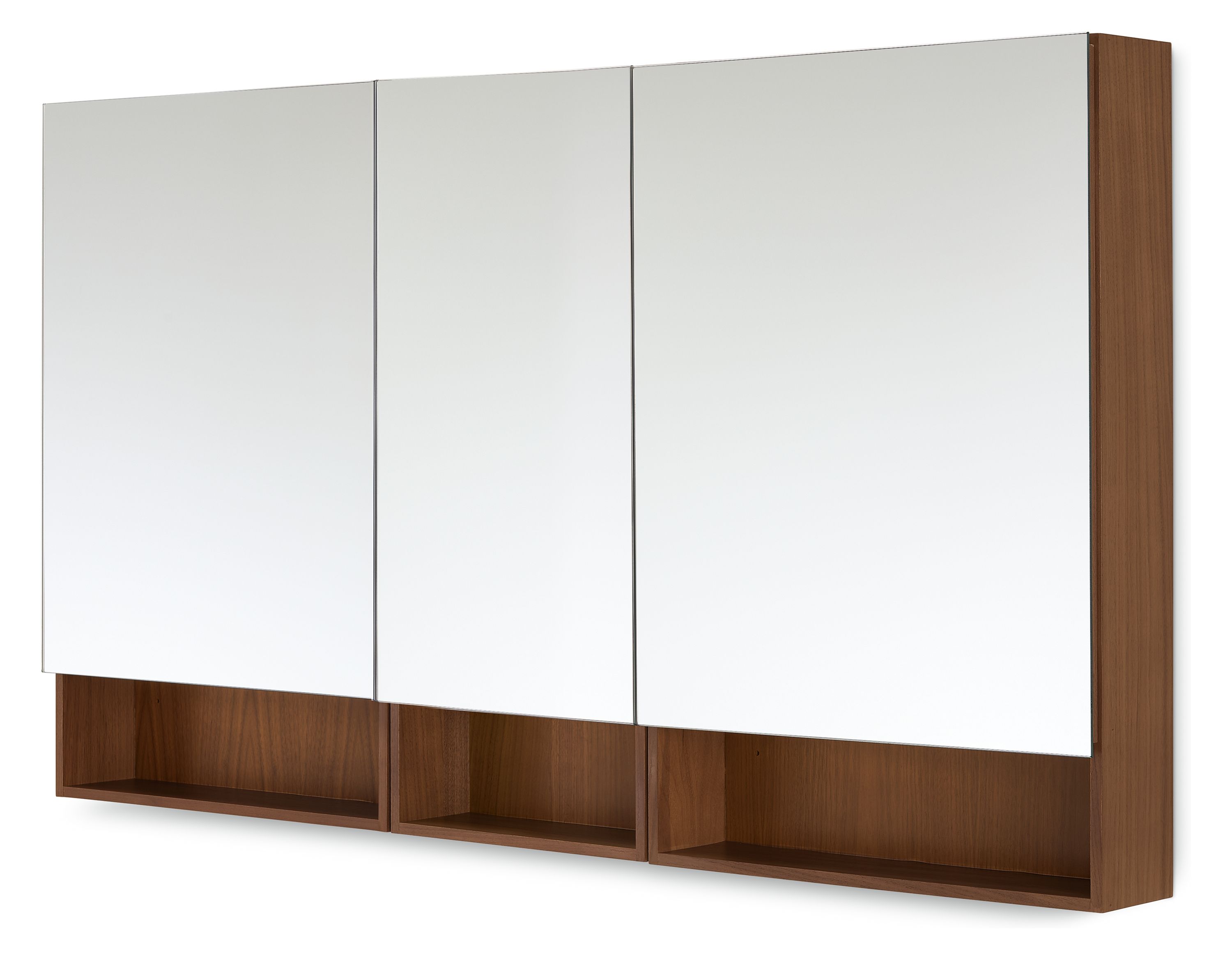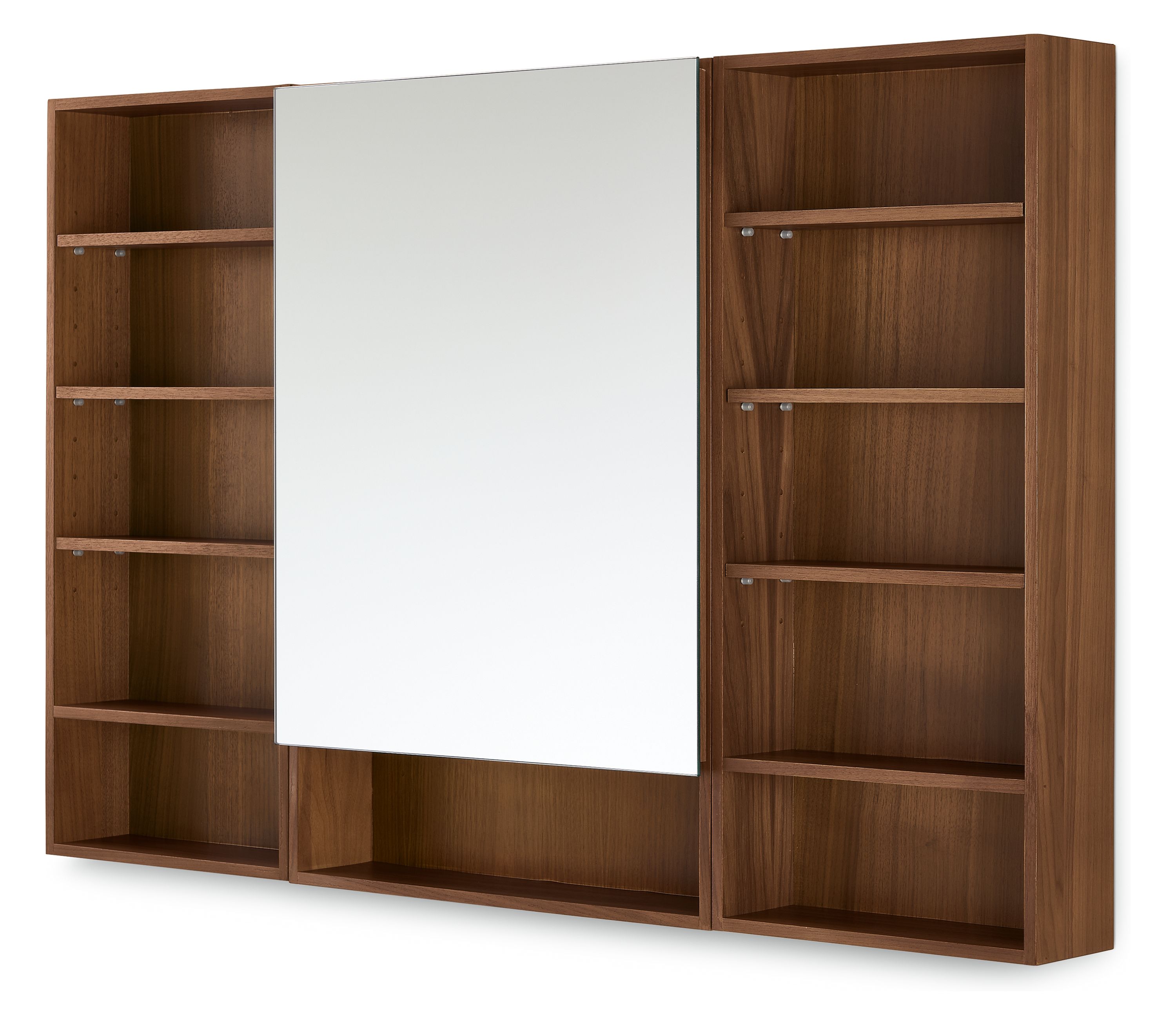 Bridger is a modern medicine cabinet set made in Vermont. Adding efficient storage to your bathroom with adjustable glass shelves, this elegant design comes in several woods to suit your space and is finished with a high-quality mirror.
