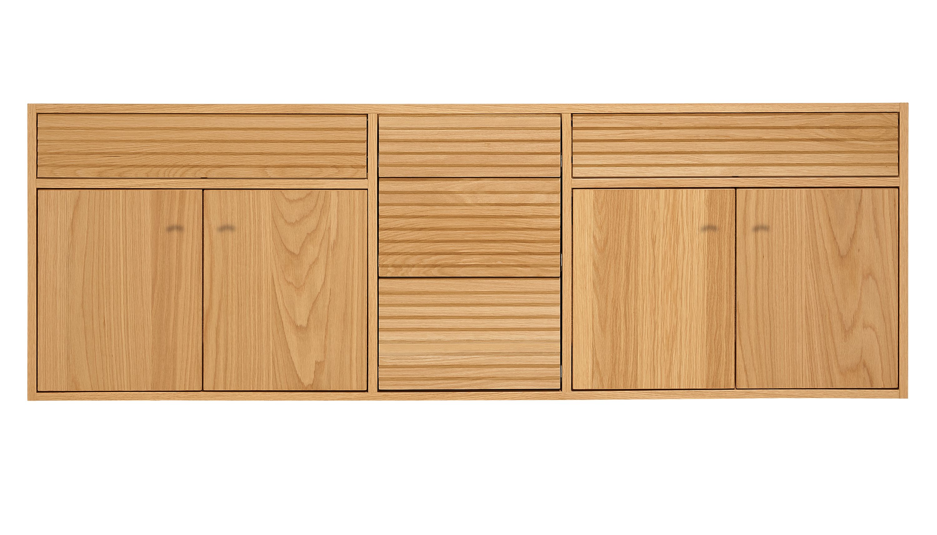 Pennsylvania woodworkers craft our Adrian bathroom vanity from a combination of U.S.-sourced solid wood and top-quality wood veneer. Adrian features a unique steel base design, soft close doors and push-to-open drawers, plus an optional quartz top with customizable options.