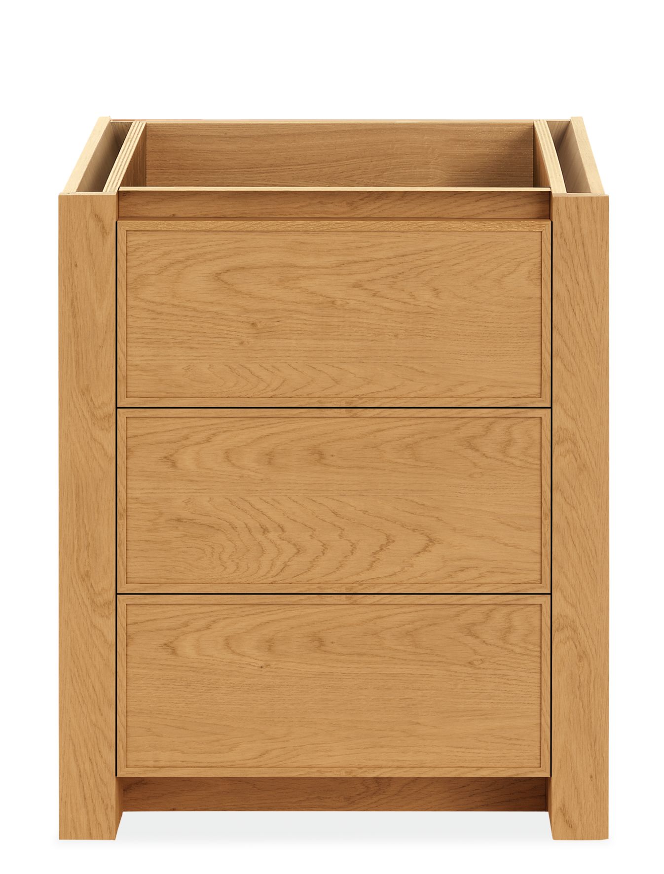 With clean lines, natural wood and a variety of beautiful stone tops, our Amherst vanity unites beauty and function all within one piece. Beneath the stone top and wood case, this artisan-crafted modern bathroom vanity houses smooth, push-to-open drawers that give you plenty of storage.
