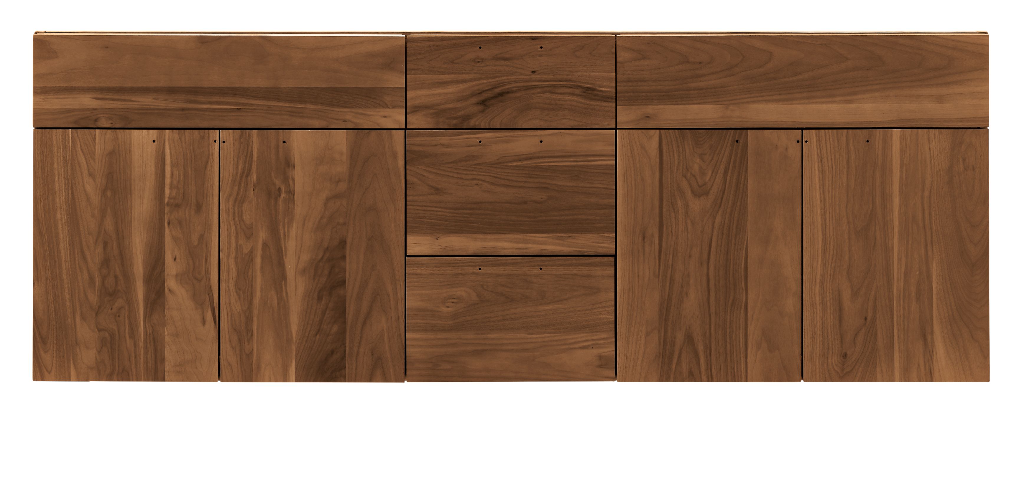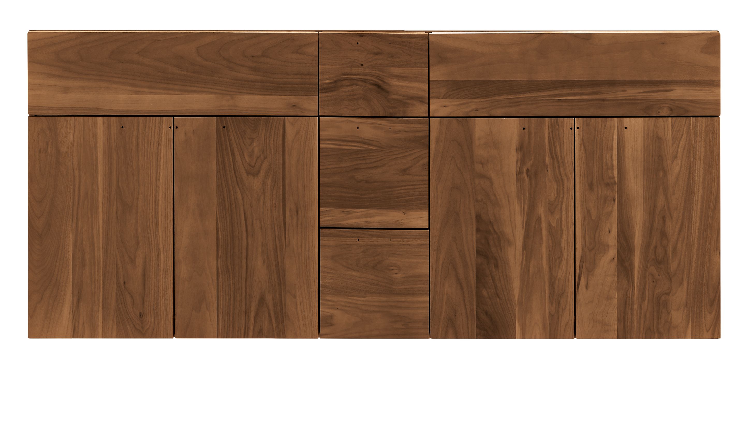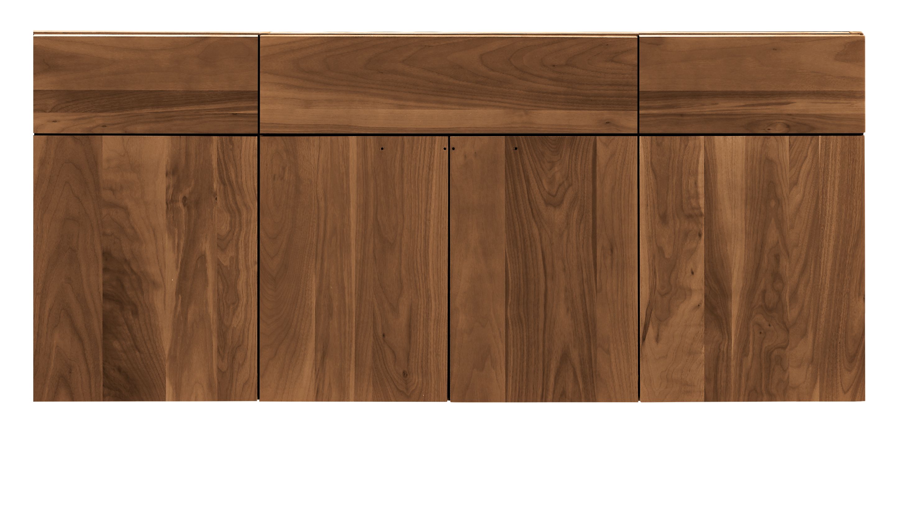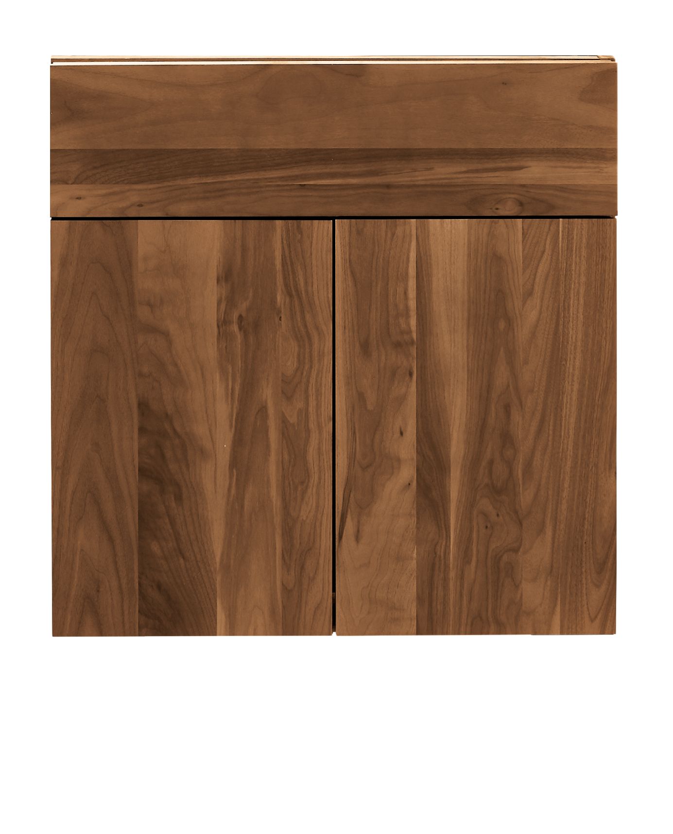 Solid wood drawer fronts; undermount glides (white oak & walnut, as shown) or 3/4 extension ball-bearing glides (ash with stain)