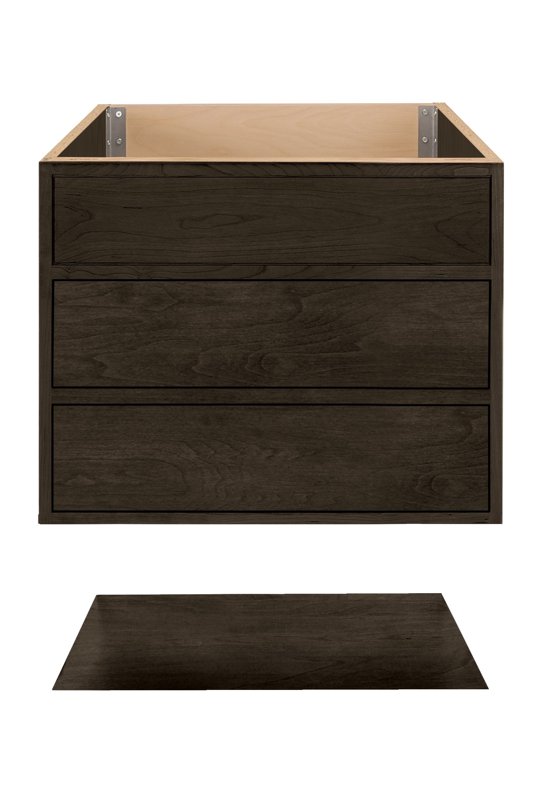 - Bottom Panel: wood veneer over particle board