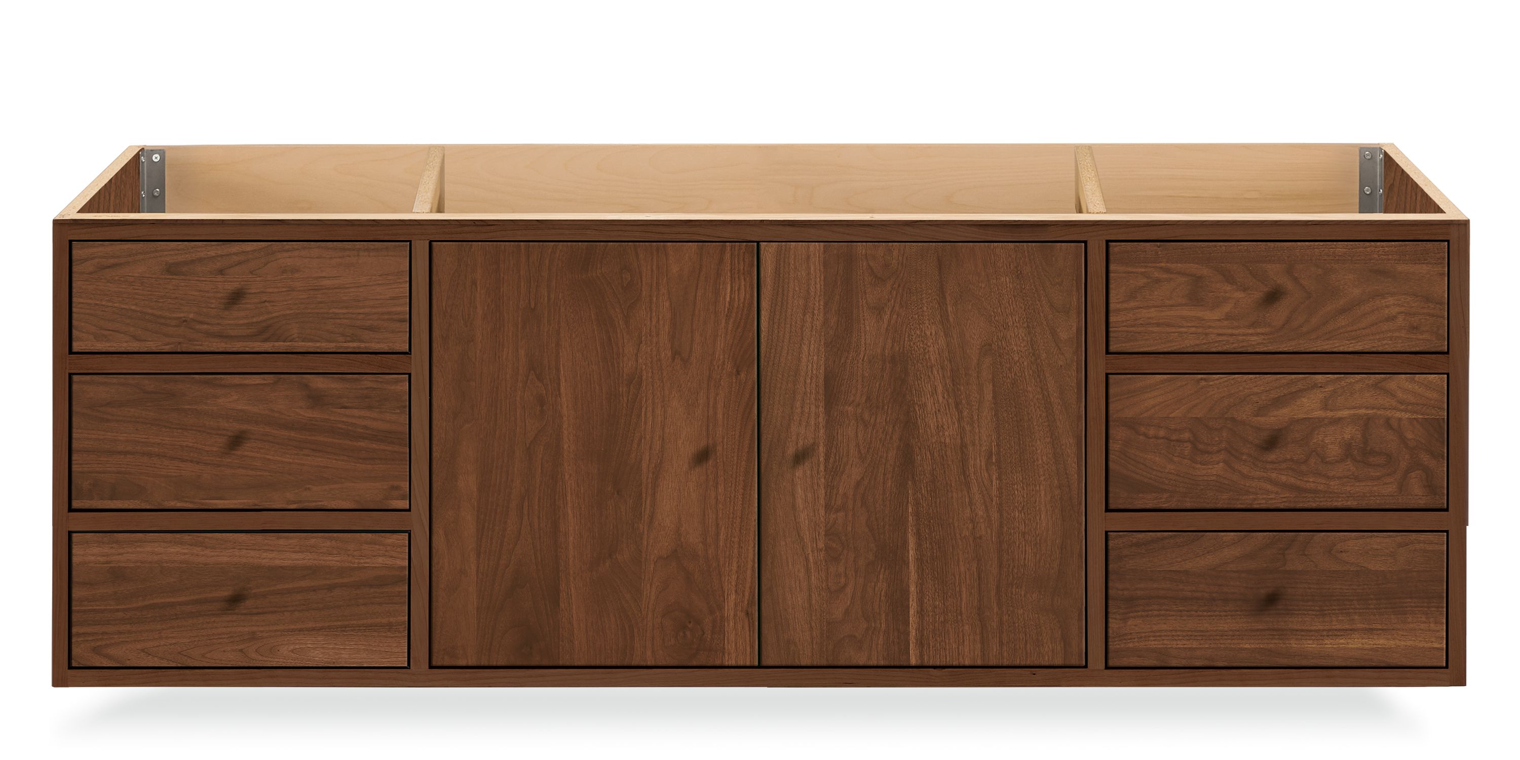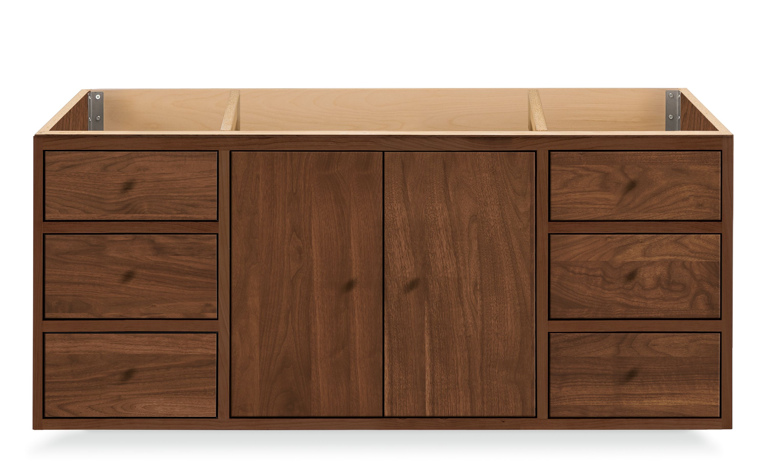 Select drawers have a U-shaped box design to accommodate interior plumbing under sinks