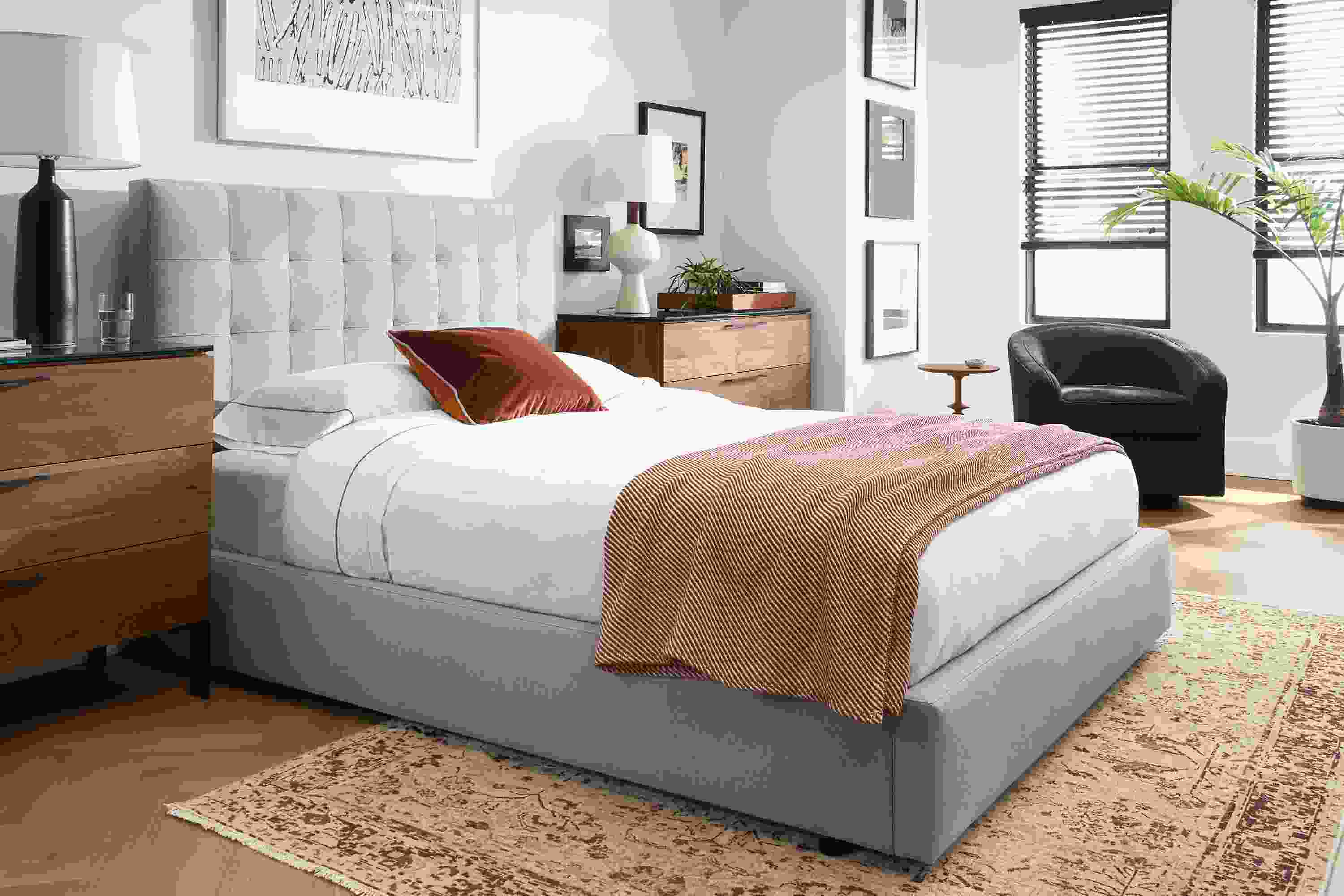 Soft fabric upholstery embellished with tufting puts a modern twist on a classic style. Featuring quality craftsmanship, the Avery bed adds texture and color to your room. No box spring required. An optional drawer at the foot adds extra storage.