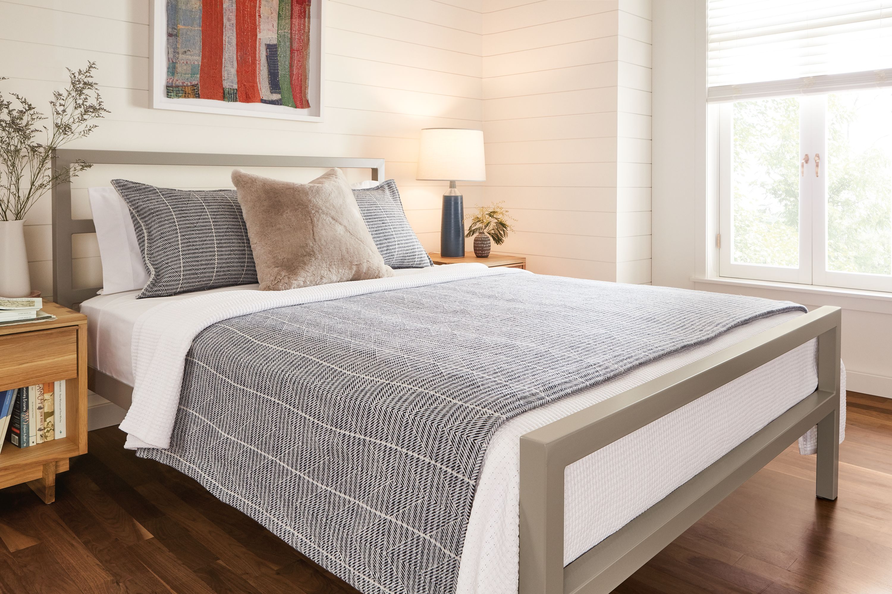 The simple design of our Parsons bed is timelessly modern. This bed is made from recycled steel which is welded in a family-owned Minnesota metalworking shop. Parsons comes in a wide range of color choices, and the metal slats mean there's no need for a box spring.