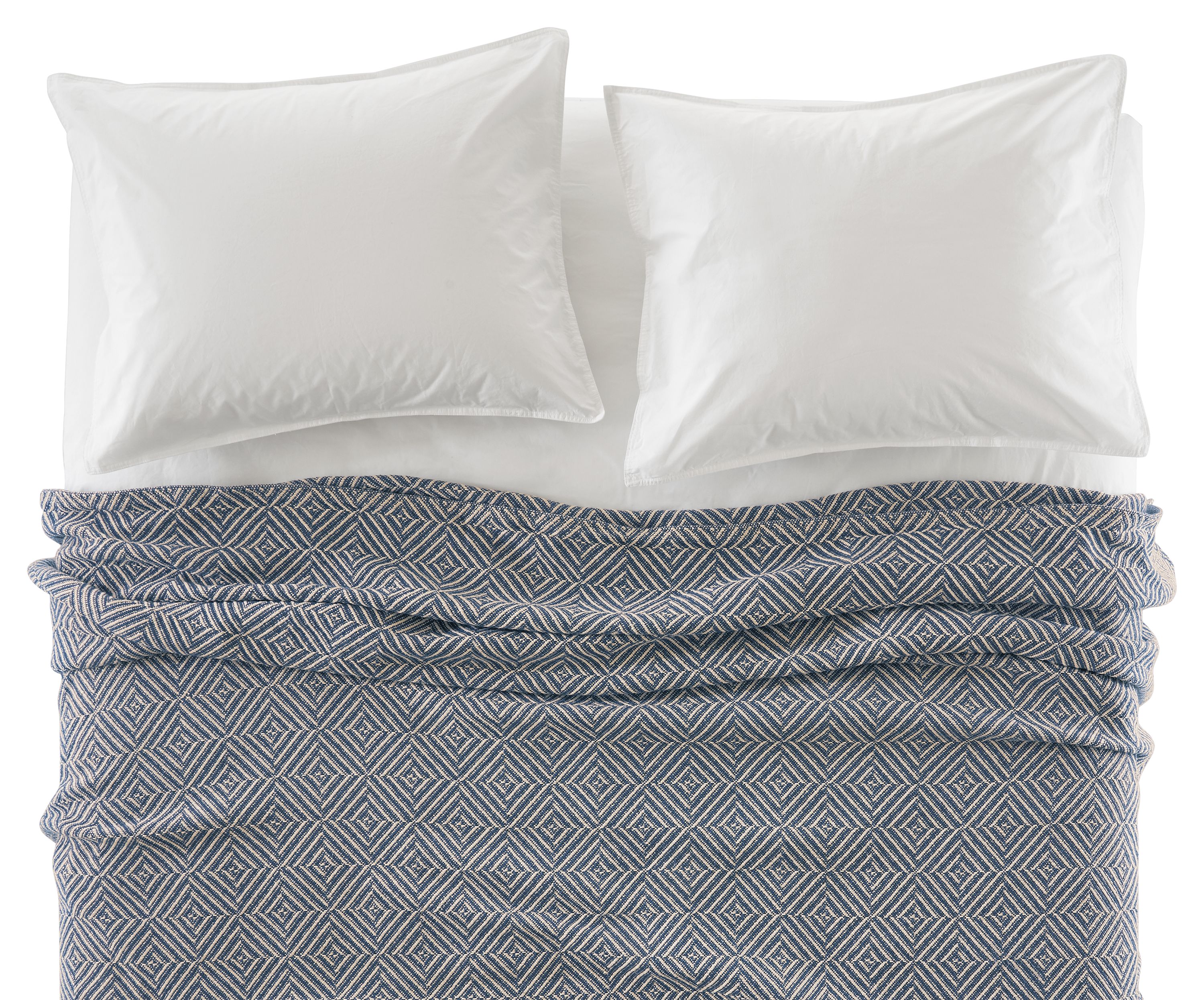 One of our U.S. textile mill partners developed this two-tone diamond pattern and colors exclusively for Room & Board. Artisans weave the beautiful design on jacquard looms and sew the blankets in their Maine workshop. Made from preshrunk, 100% cotton yarns, the blankets feel substantial, soft and cozy. They’re easy care, too: simply machine wash.
