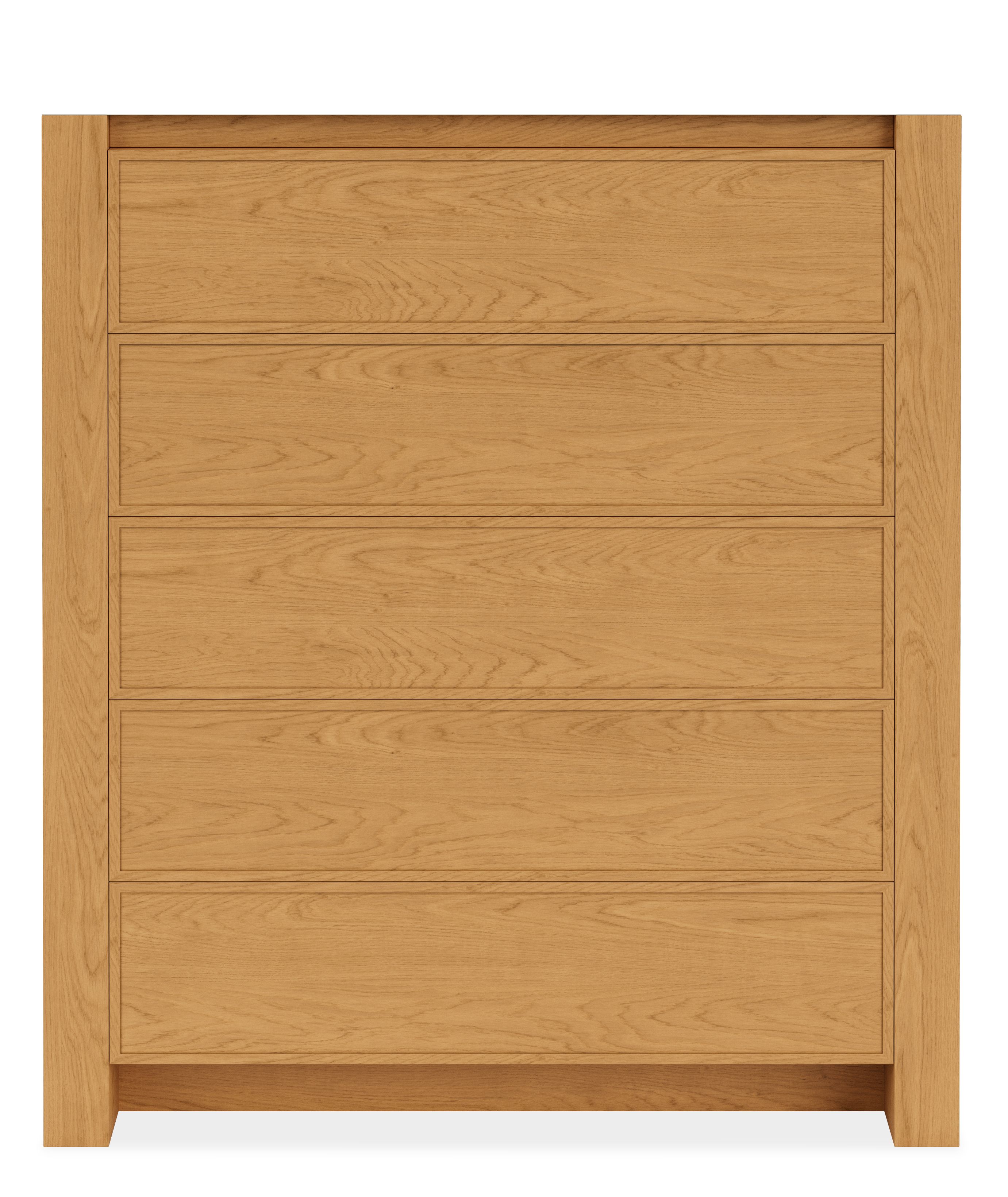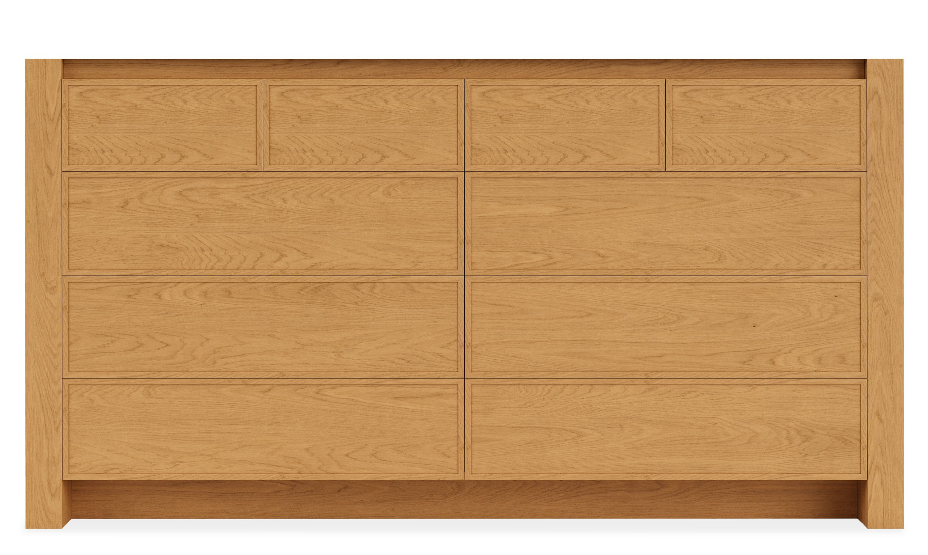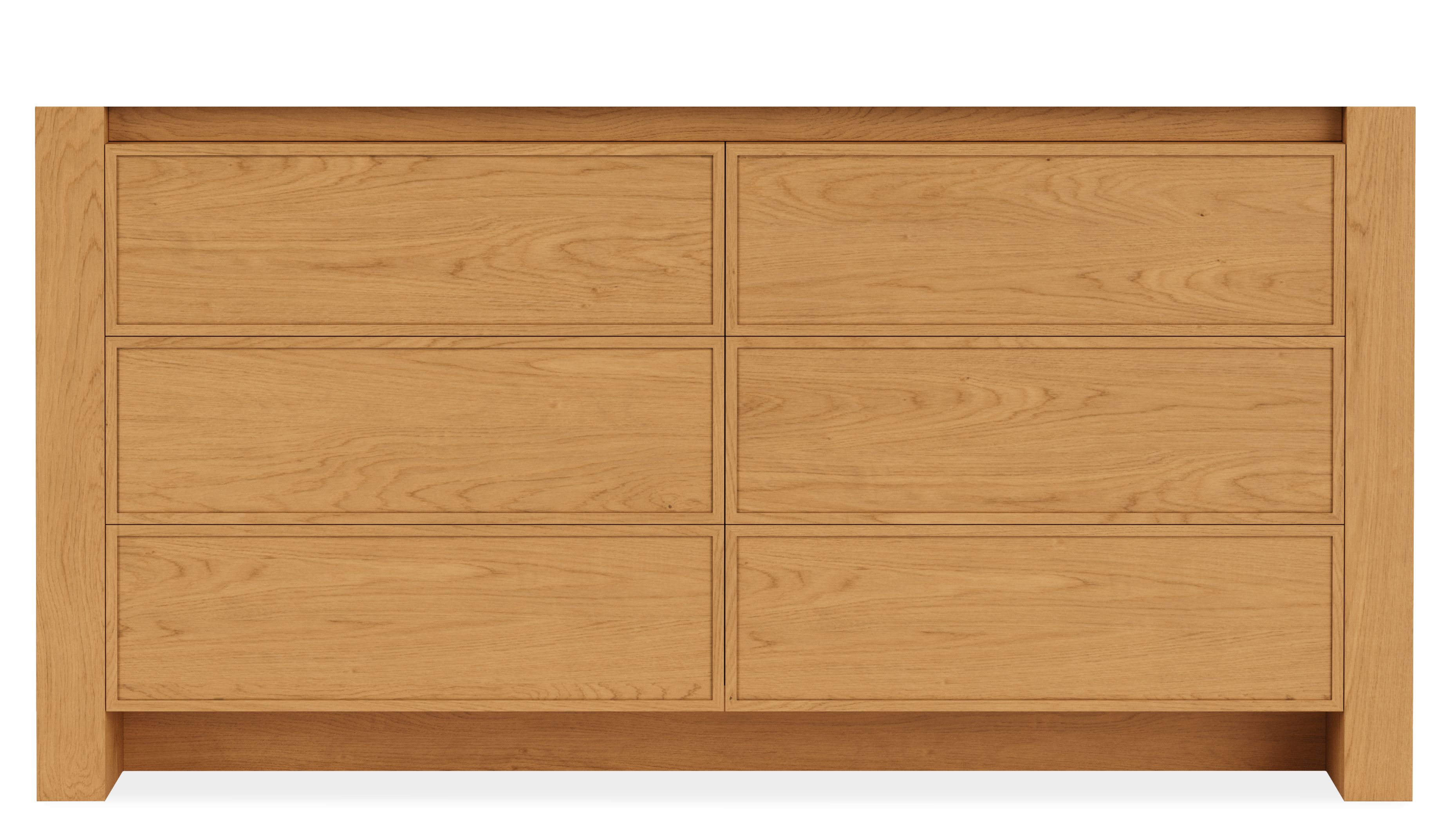 Our Amherst dresser's refined design and clean lines highlight its modern style, so it looks right at home in any bedroom. Beneath the stone top and wood case, this artisan-crafted dresser houses smooth, push-to-open drawers, providing you with plenty of storage.
