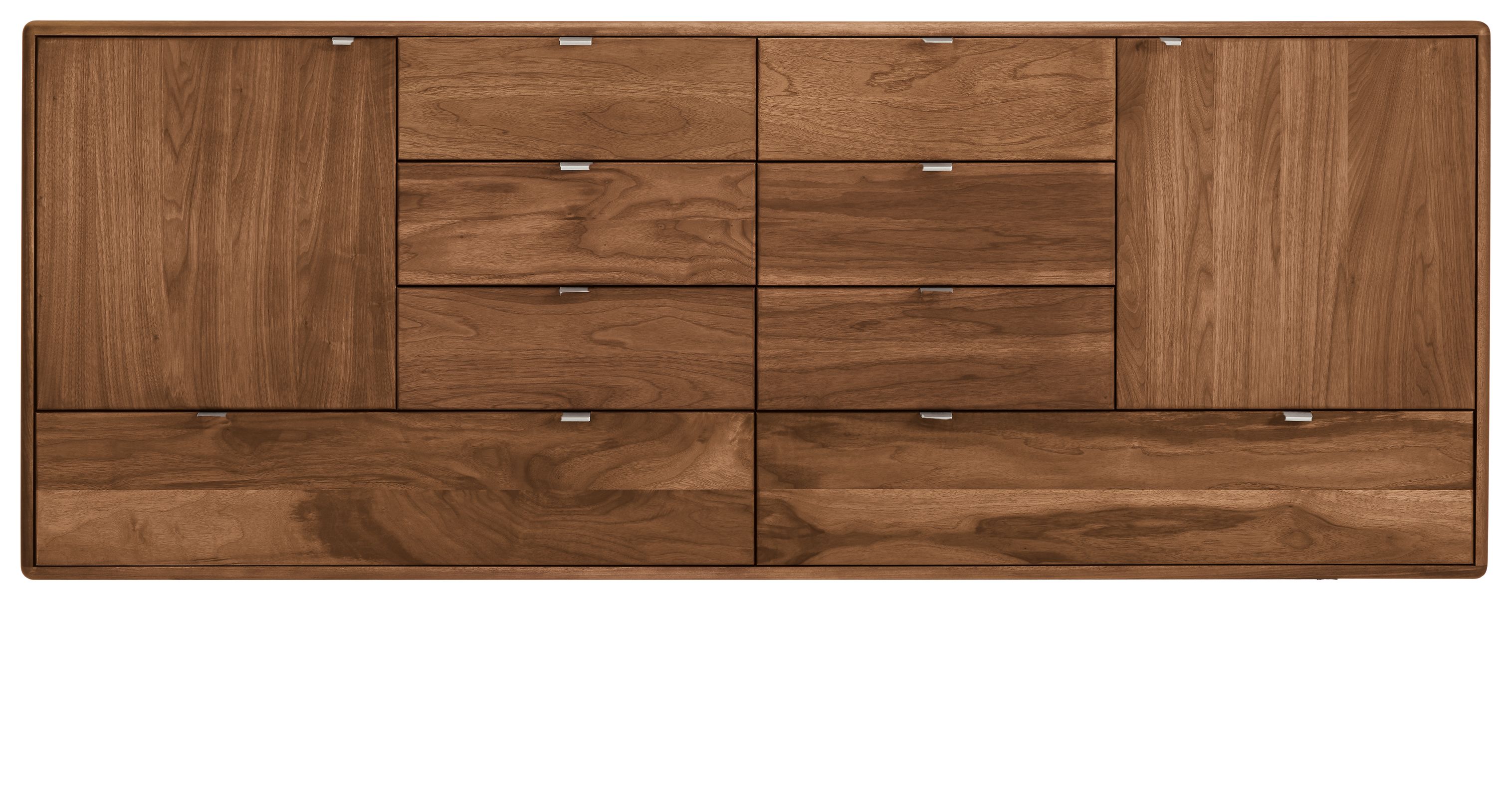 Our Hensley dresser brings a soft and modern silhouette to your bedroom. Inspired by the timeless appeal of mid-century design and infused with modern details, Hensley features a stunning mix of materials that give it an updated look for today. You'll love the smooth feel of the domestically sourced solid wood, and appreciate the durability and beauty of the brushed stainless steel or powder-coated graphite base. Softly curved door and drawer pulls mimic the rounded edges of the dresser to round out this sophisticated storage option.