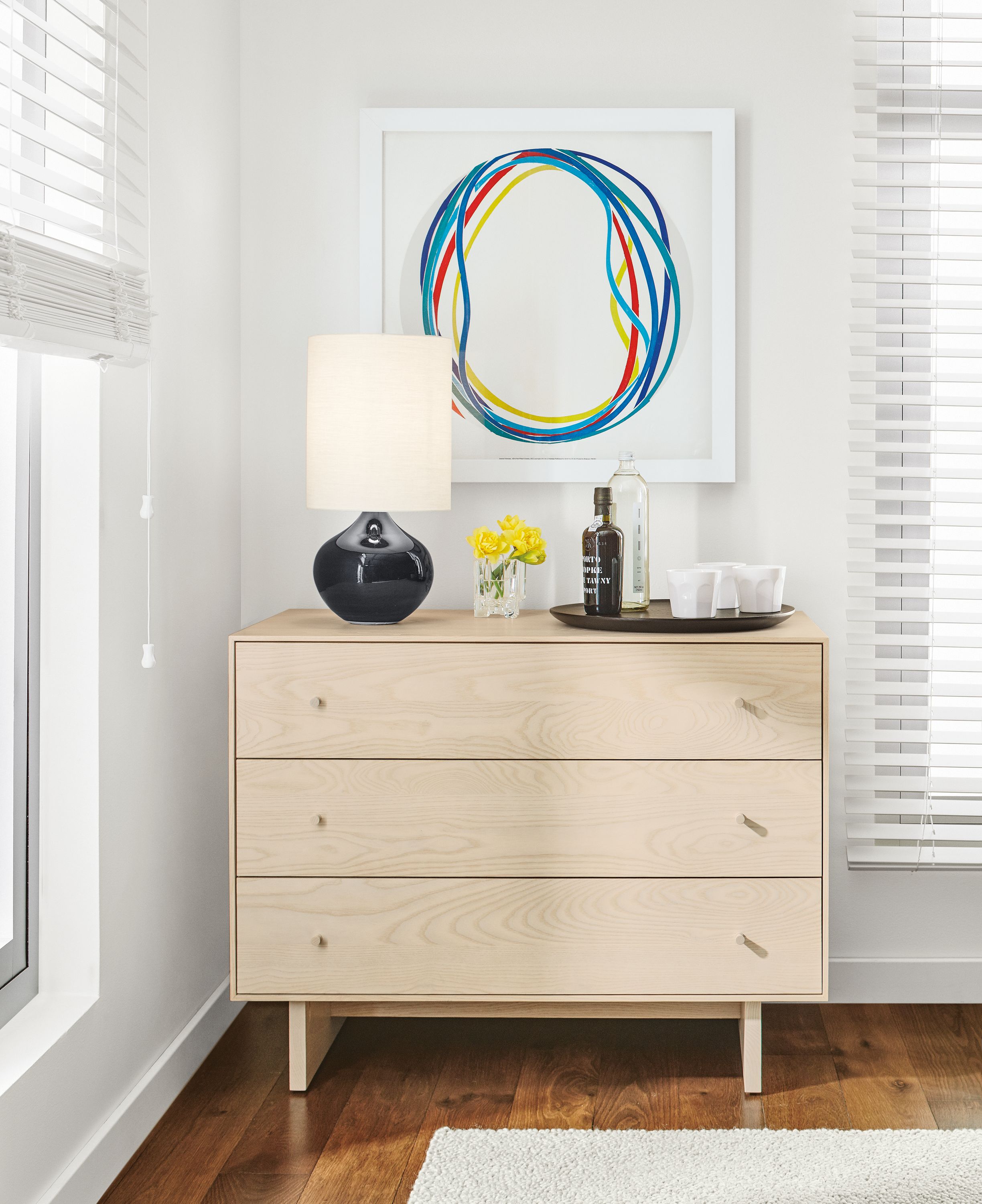 Built to be rock solid, this modern dresser is handcrafted in West Virginia by skilled artisans, who share their pride by signing the back of each piece. The natural grain of sustainably sourced U.S. solid wood is the perfect backdrop for the sleek, timeless design of this collection.