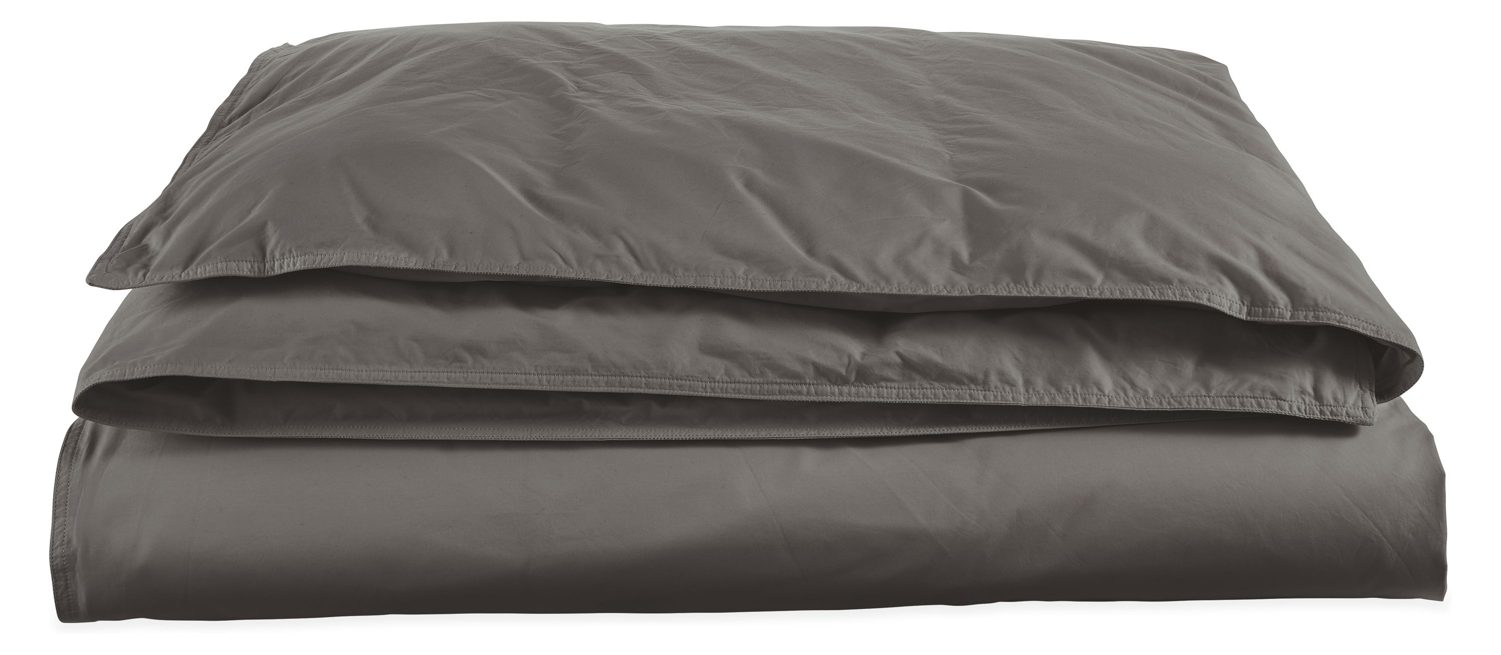 - Duvet CoverMaterial: cottonFabric Content: 100% long-staple cottonColor: charcoalFinish: garment dyeingFeatures: Long-staple cotton, Softens over time, Garment dyed, Pre-shrunk, Responsibly madeResponsibly made: Cleaner chemistry