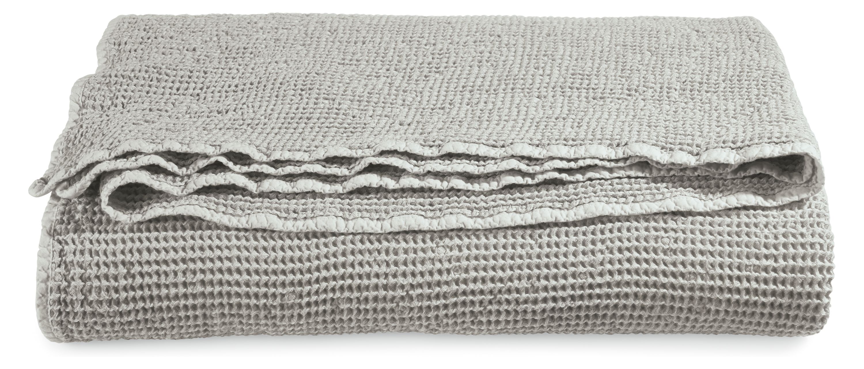 Our Loren coverlet has a classic waffle weave that feels soft and textural. This cozy blanket is made in Portugal from a cotton-linen blend that's stone-washed and garment-dyed for a relaxed natural feel and look. The shams have a zipper closure.