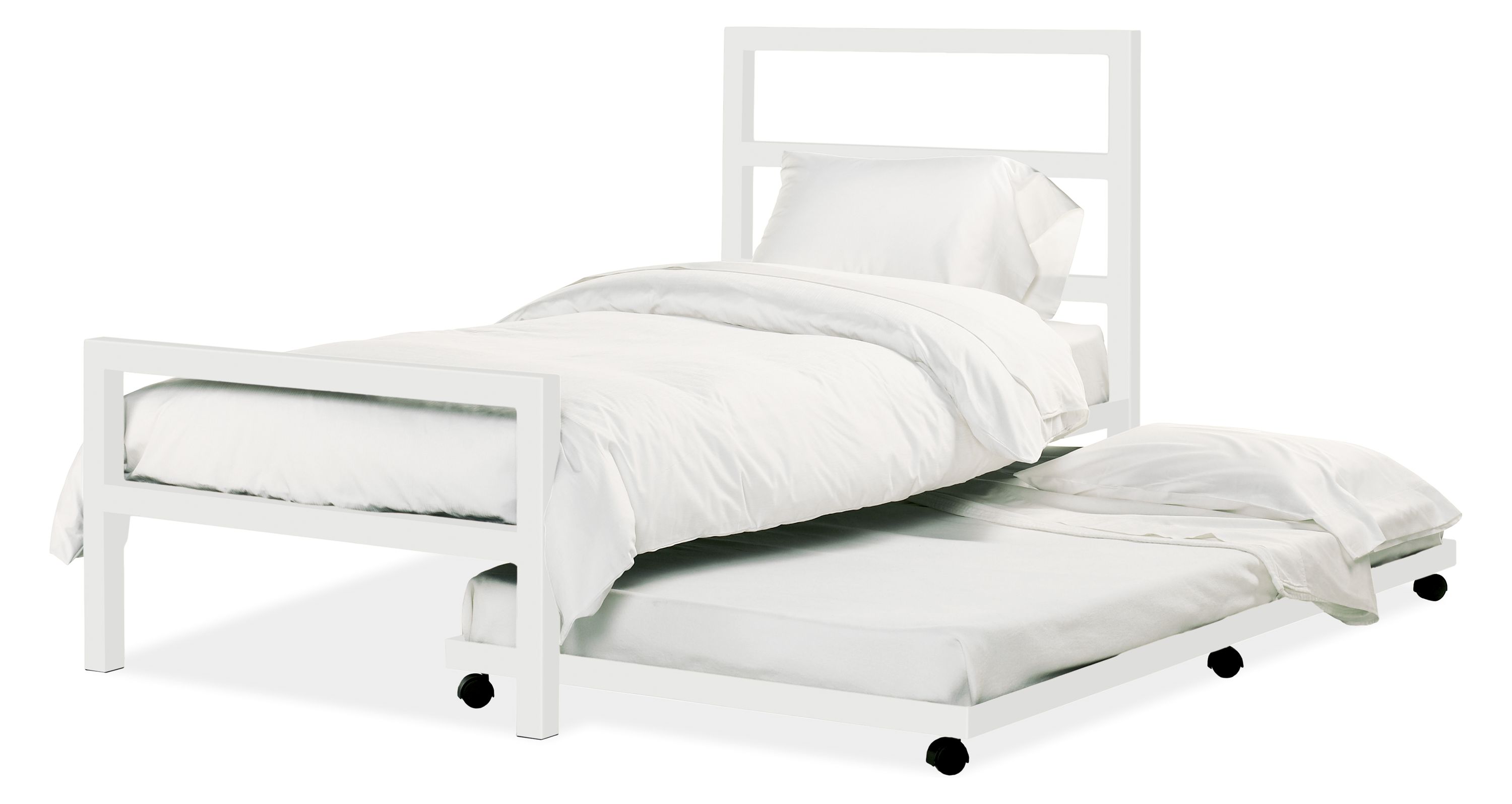 Made from the same steel as our Parsons kids' bed for easy color coordination, our Minnesota-made steel trundle bed is perfect for kids' sleepovers—or it can serve as an oversized storage drawer. The smooth-gliding casters make it easy to wheel out and stow away.