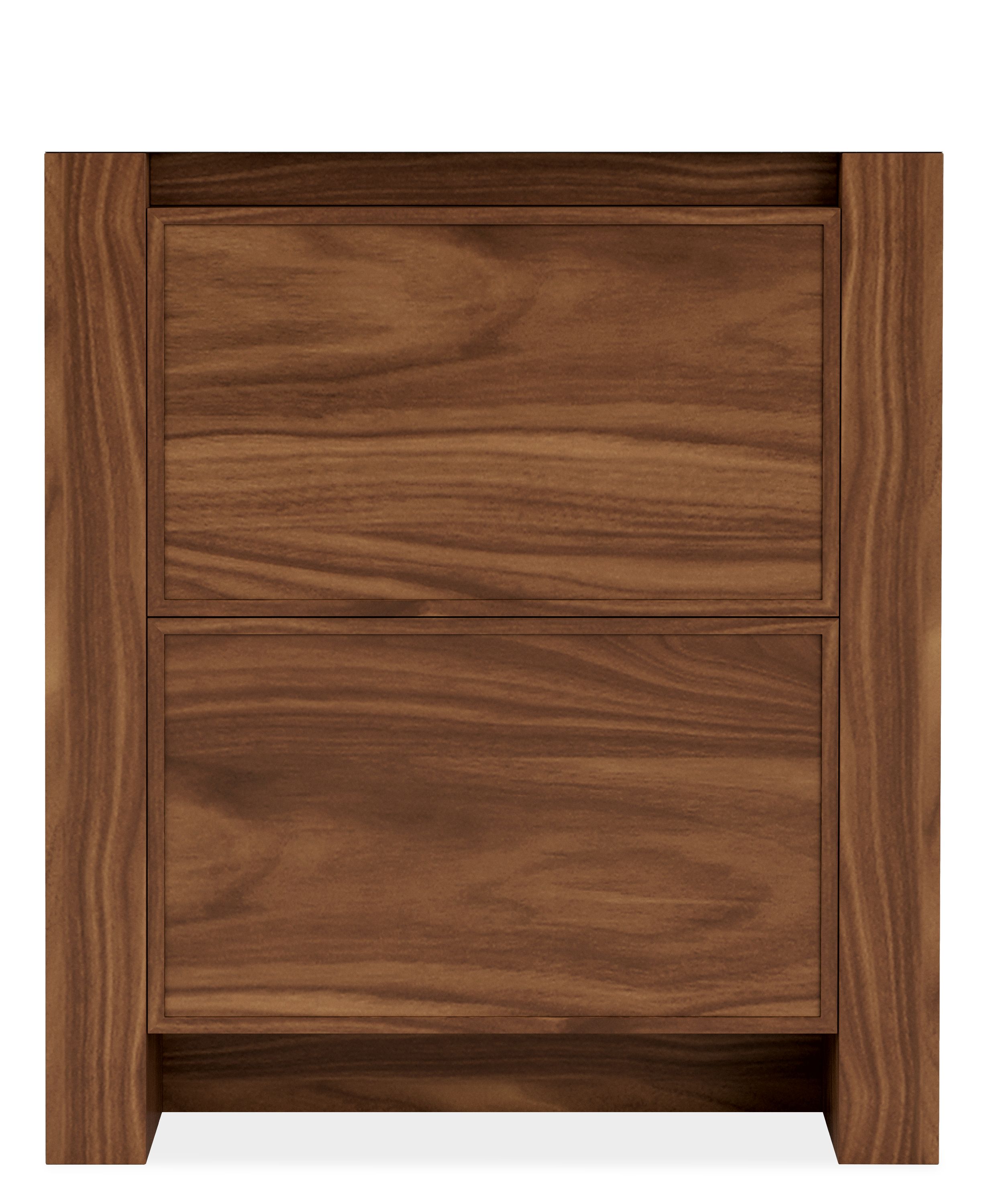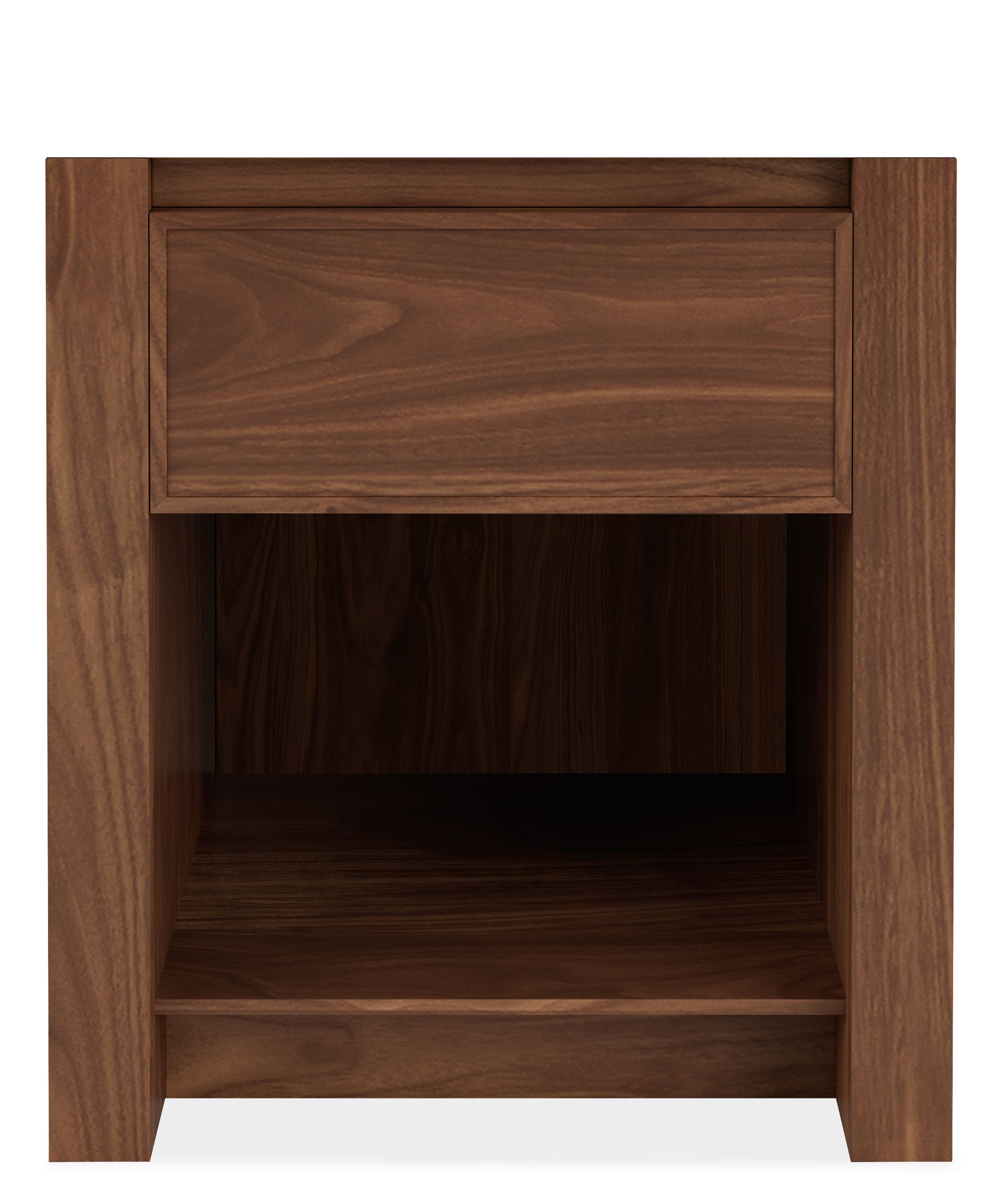 Our Amherst nightstand's refined design and clean lines highlight the modern style and quality materials, so it looks right at home in any bedroom. Beneath the stone top and wood case, this artisan-crafted nightstand houses smooth, push-to-open drawers, providing you with plenty of storage.