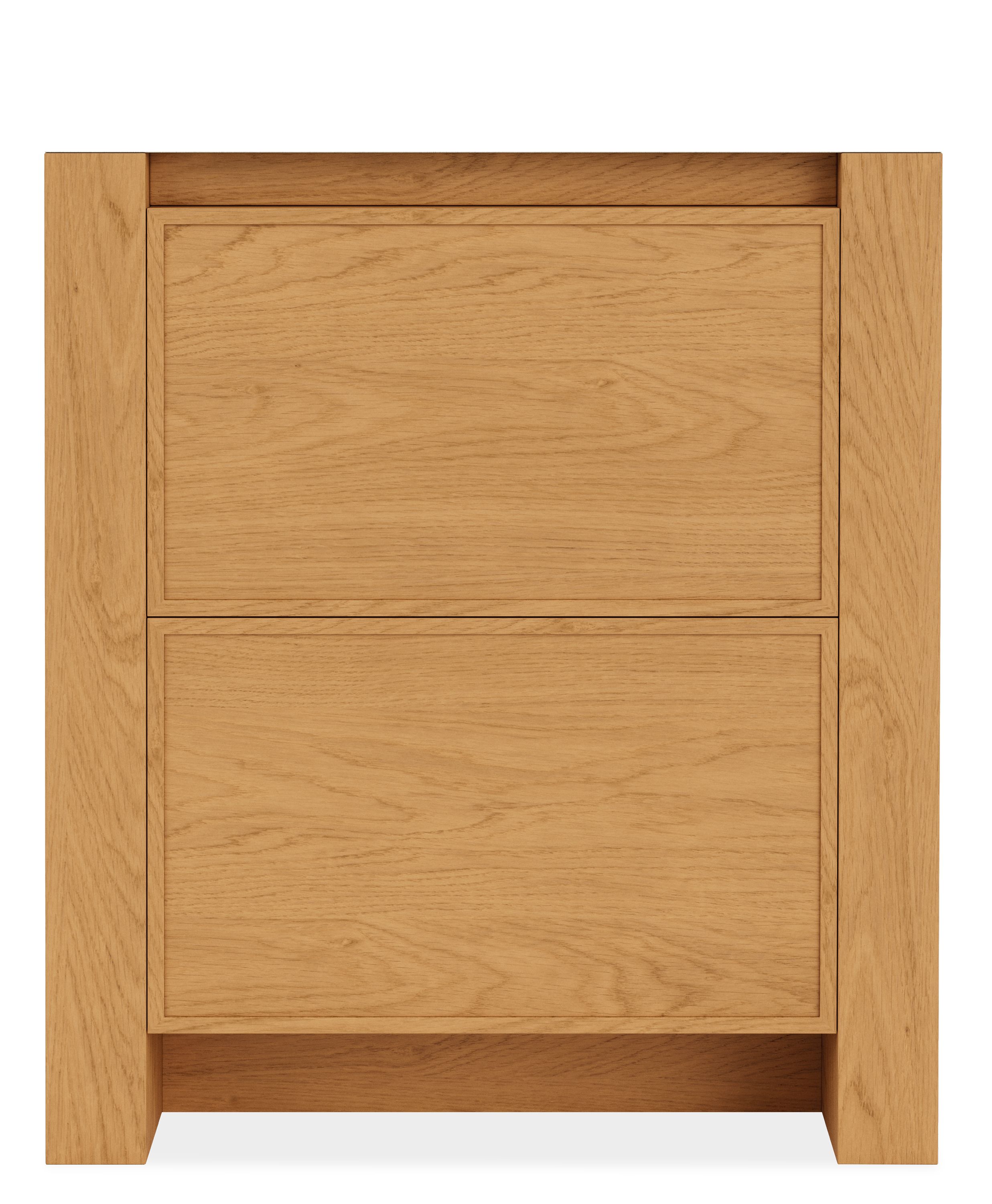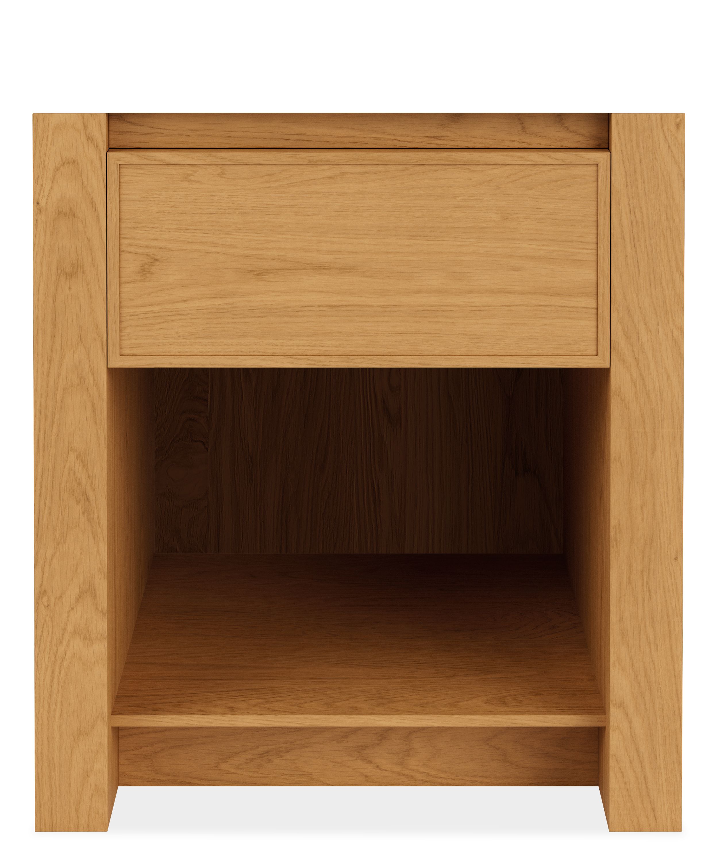 Our Amherst nightstand's refined design and clean lines highlight the modern style and quality materials, so it looks right at home in any bedroom. Beneath the stone top and wood case, this artisan-crafted nightstand houses smooth, push-to-open drawers, providing you with plenty of storage.