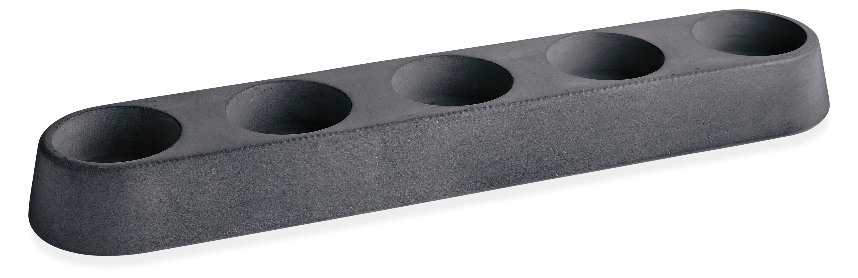 These modern tea candle holders are made from a special concrete formula that feels uniquely smooth. The recipe includes recycled stone dust to help keep waste out of landfills. Each candle holder is burnished with a sealer to protect the finish along with a cork bottom.