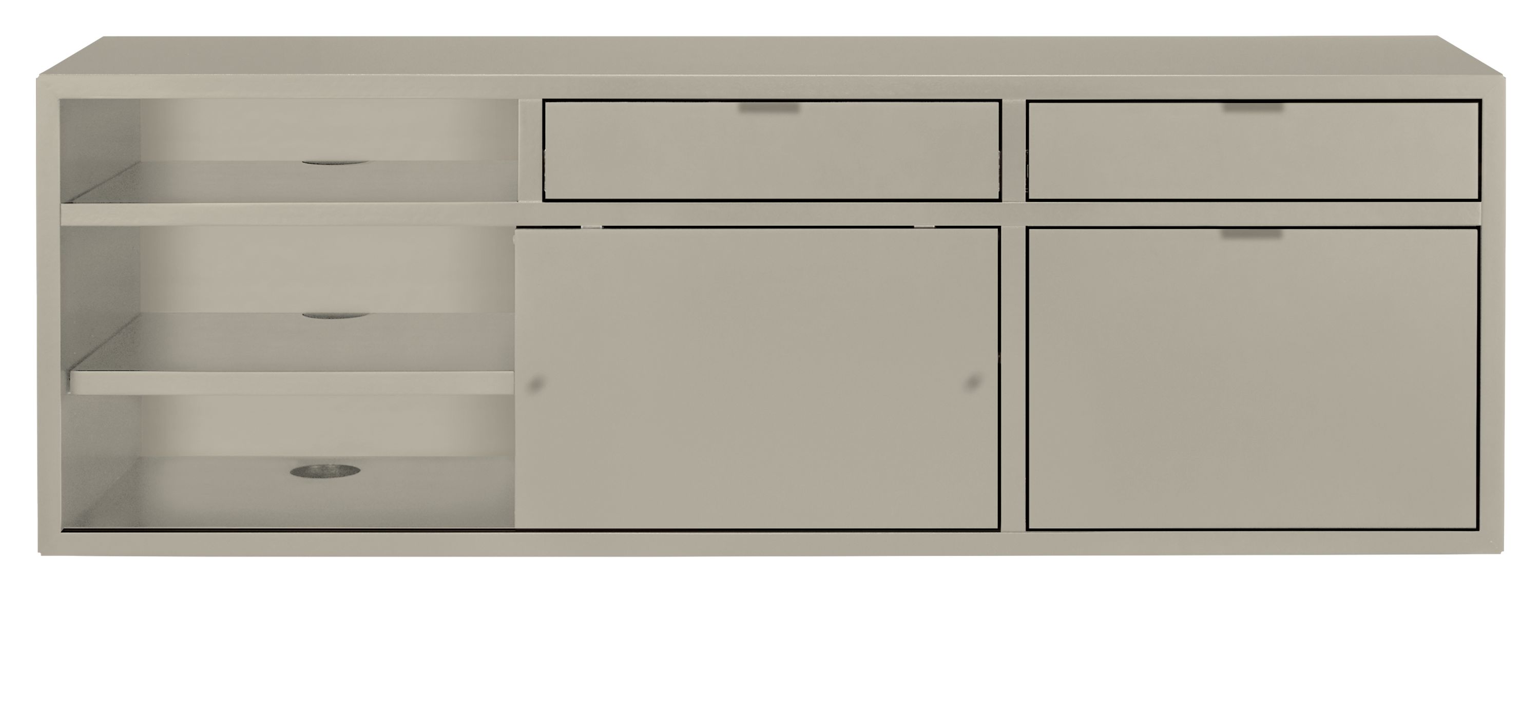 An open, airy office provides plenty of storage with modern benching systems that hold files, personal items and more.