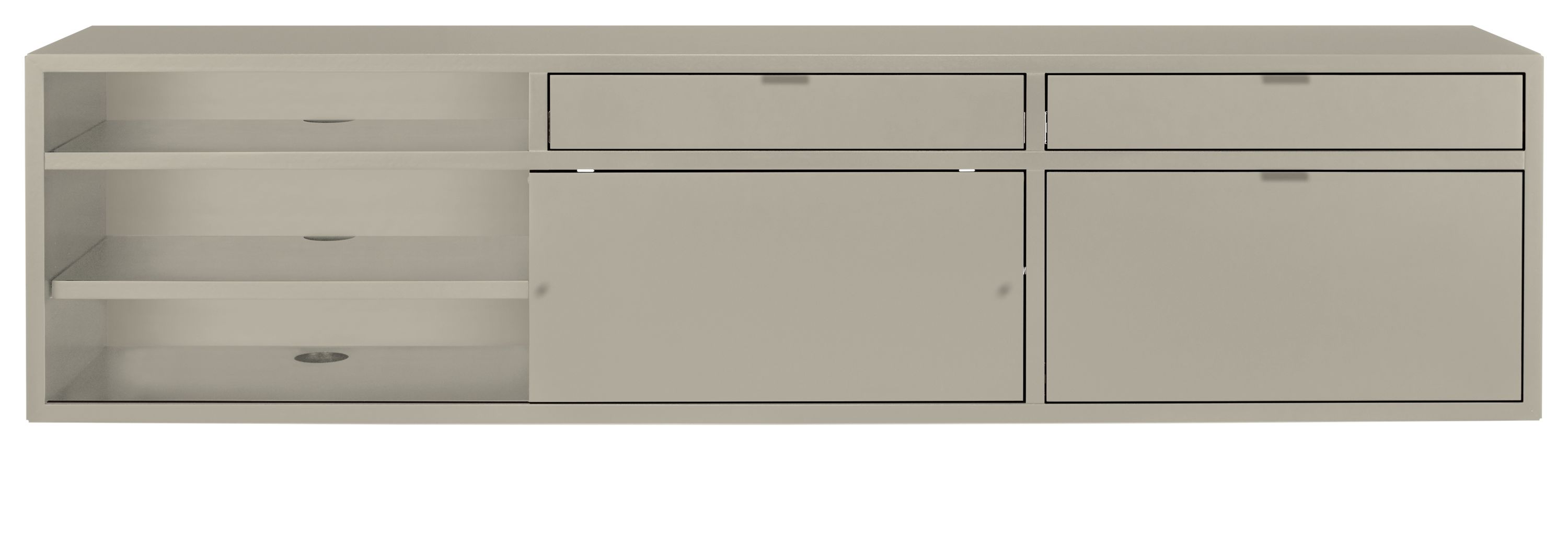 Modern, functional and effortlessly stylish, the Copenhagen file bench offers a file drawer plus extra storage with a concealing sliding door. There are cord openings in the bottom of the cabinet and through the back of each shelf, and the finished back means you can place Copenhagen anywhere.