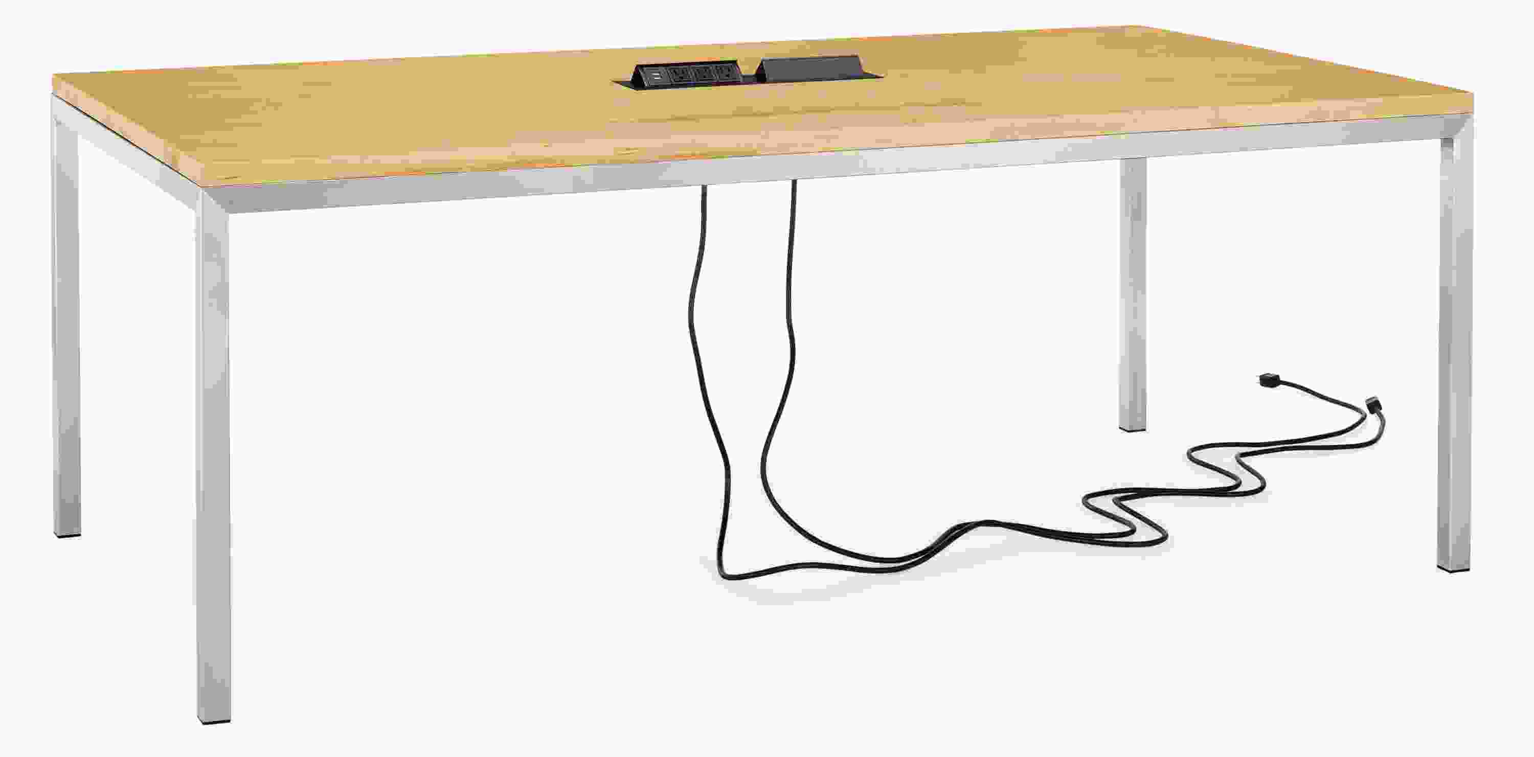 - Features: two inset, push-to-open tabletop power/charging ports, each with 3) three-prong outlets and 2) USB ports