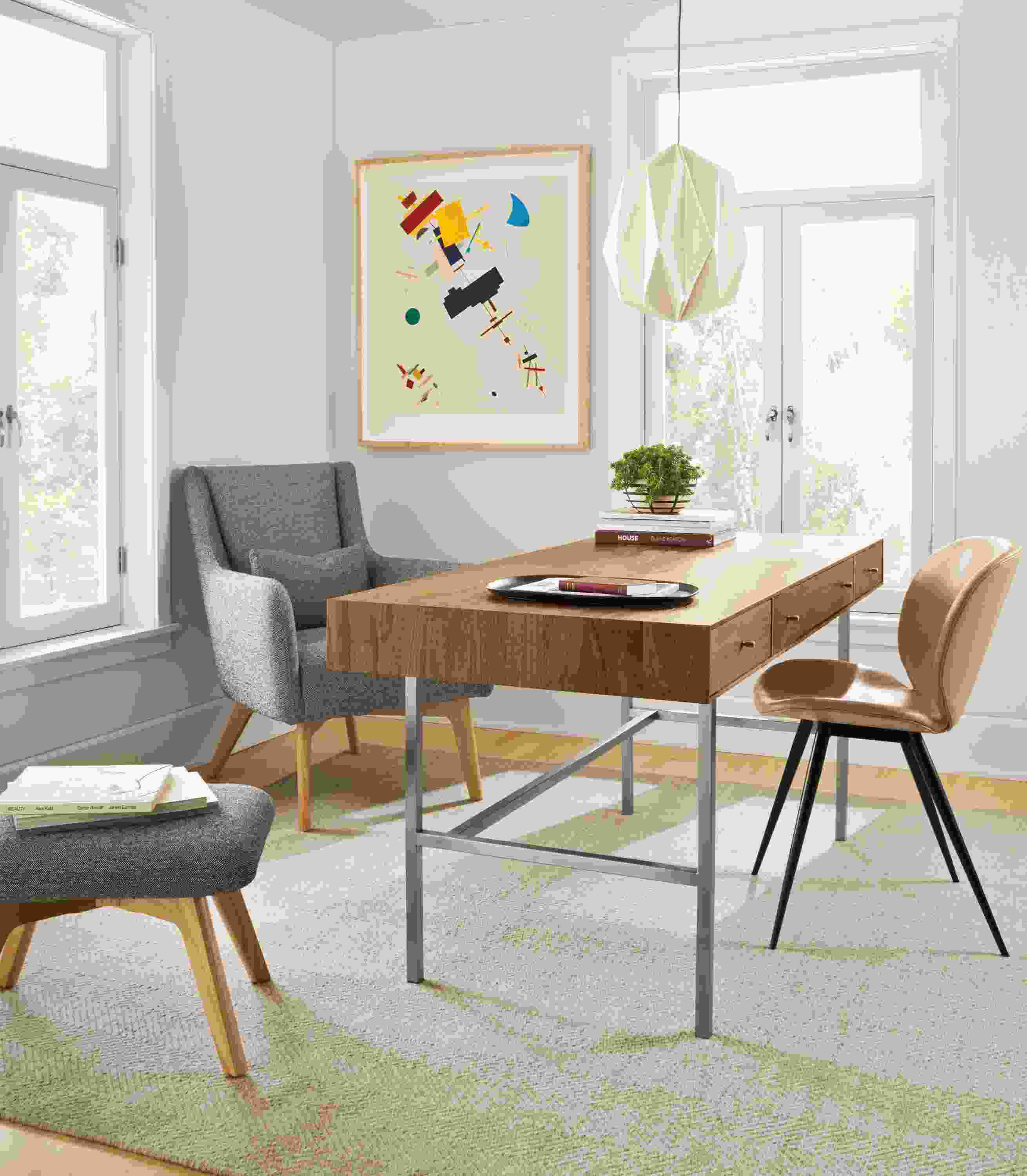 Built to be rock solid, this modern desk is handcrafted in West Virginia by skilled artisans, who share their pride by signing the back of each piece. The natural grain of sustainably sourced U.S. solid wood is the perfect backdrop for the sleek, timeless design of this collection.