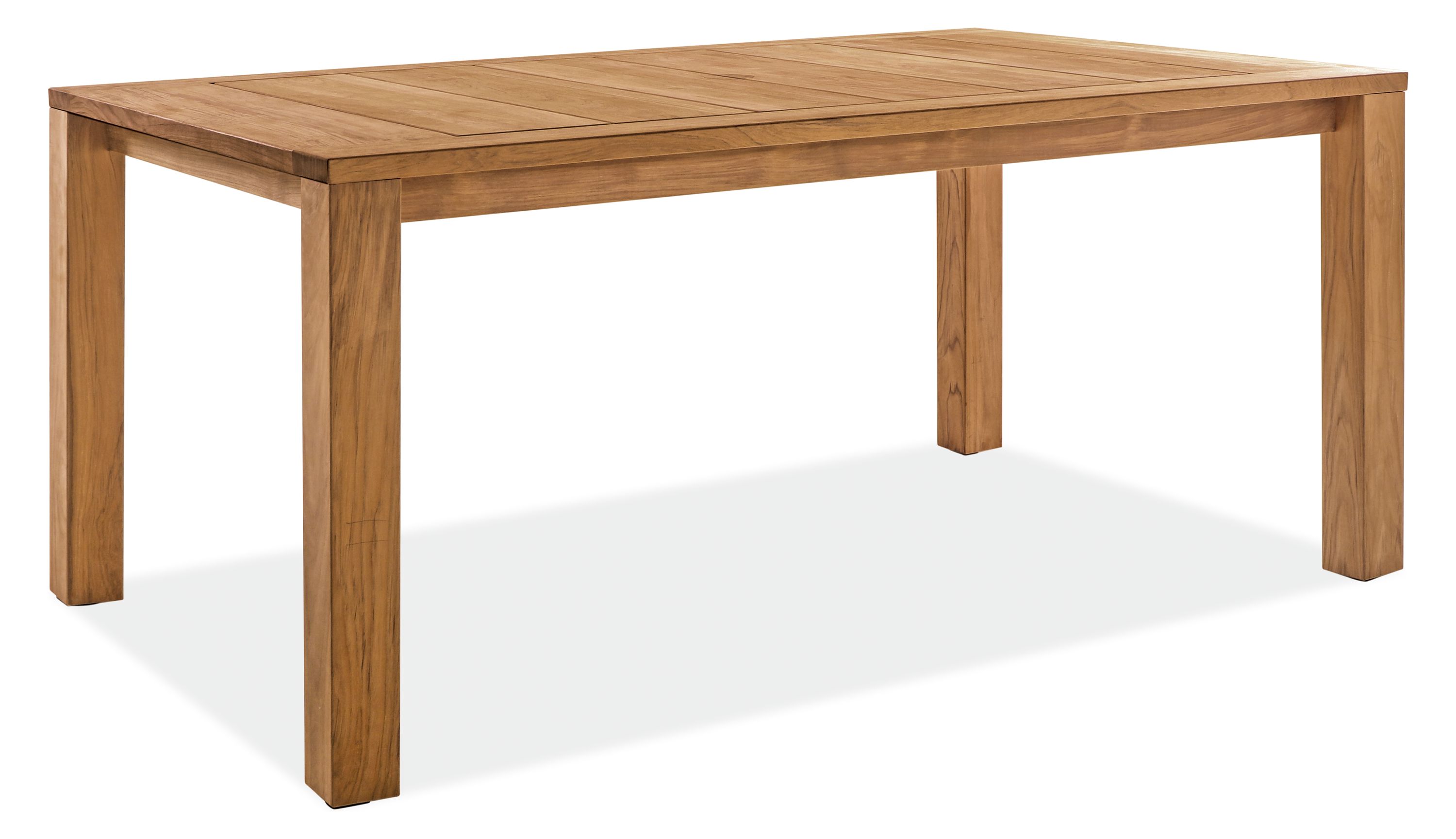 Bring modern style outdoors with our Capri table. This outdoor dining table is made from solid teak heartwood for easy outdoor durability and natural beauty. Capri features wide boards in a slatted design on the top so water can drain, plus an umbrella hole with a matching teak cover piece.