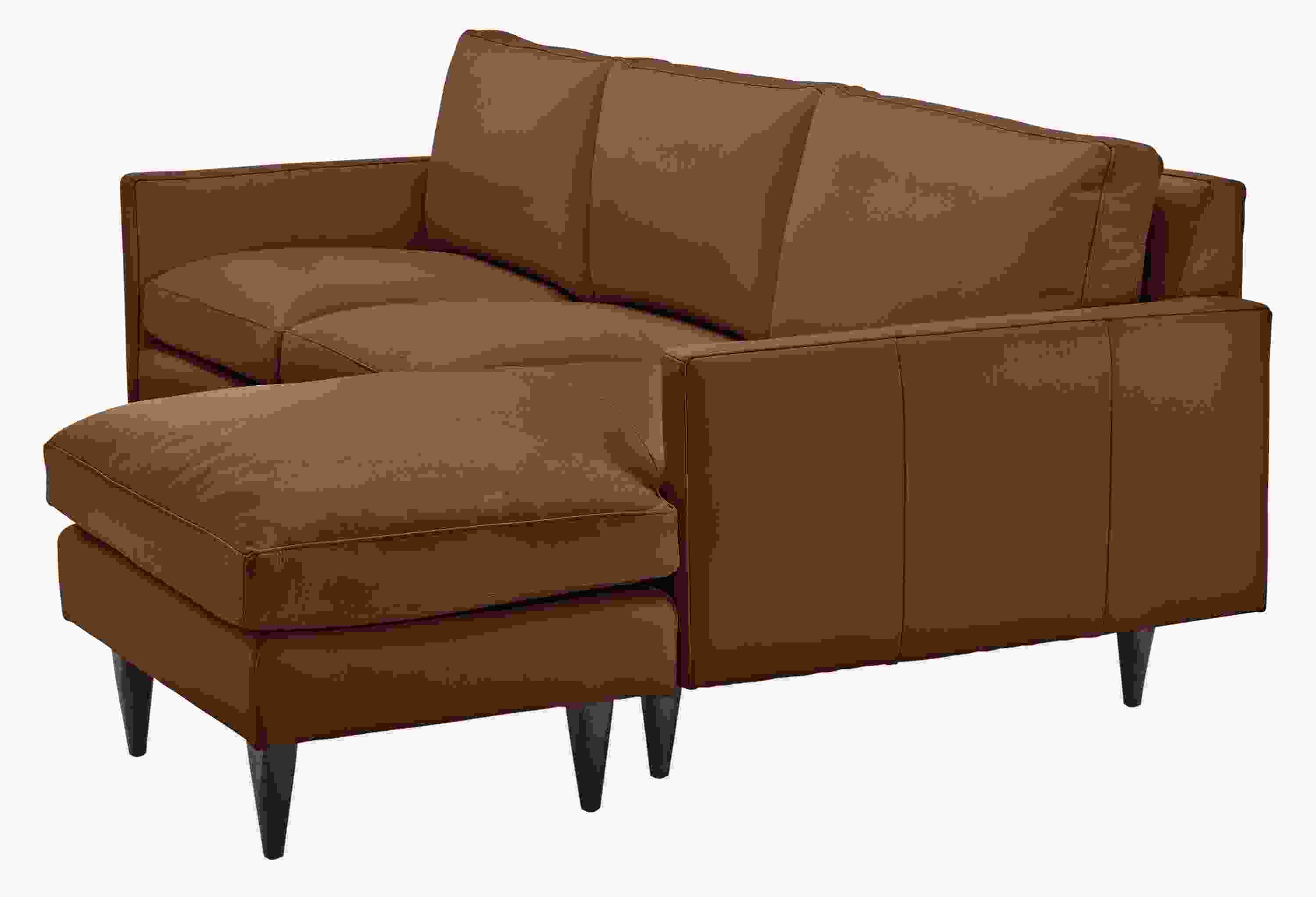 Mid-century styling meets modern comfort in the Jasper leather sofa with chaise. Narrow arms make the most of the seating space, while elegant legs give Jasper a light profile. Plush, blend-down cushions envelop you in comfort and the smaller scale frame won't overwhelm your space.
