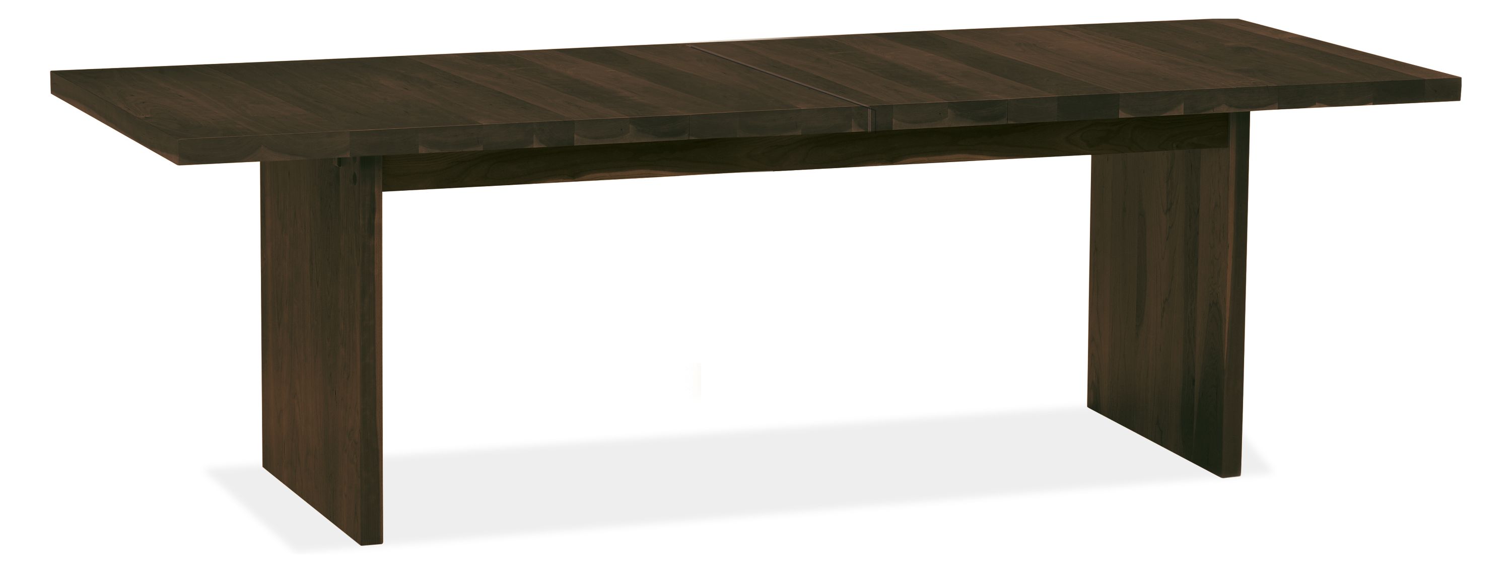 Celebrate the natural beauty of wood with our Corbett modern dining table. Handcrafted by artisans in Vermont, this table is made from thick, solid wood panels and adds a clean, substantial presence to your room. The design is simple with a generous overhang on the ends of the table and a narrower apron on the sides. The extension mechanism works smoothly and can be opened easily by one person.