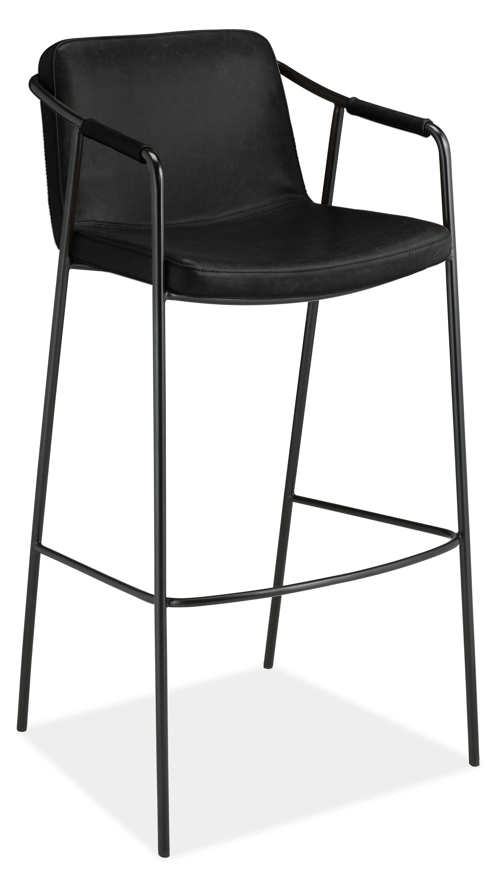 The minimalist silhouette of our Mazie stool makes it an effortless addition to modern spaces. Mazie’s synthetic leather-wrapped arms and powder-coated steel elevate the stool’s appearance and provide the durability necessary to hold up to high-traffic spaces. Paired with the soft synthetic leather, the gentle curves throughout the seat provide extra comfort and complement the refined silhouette.