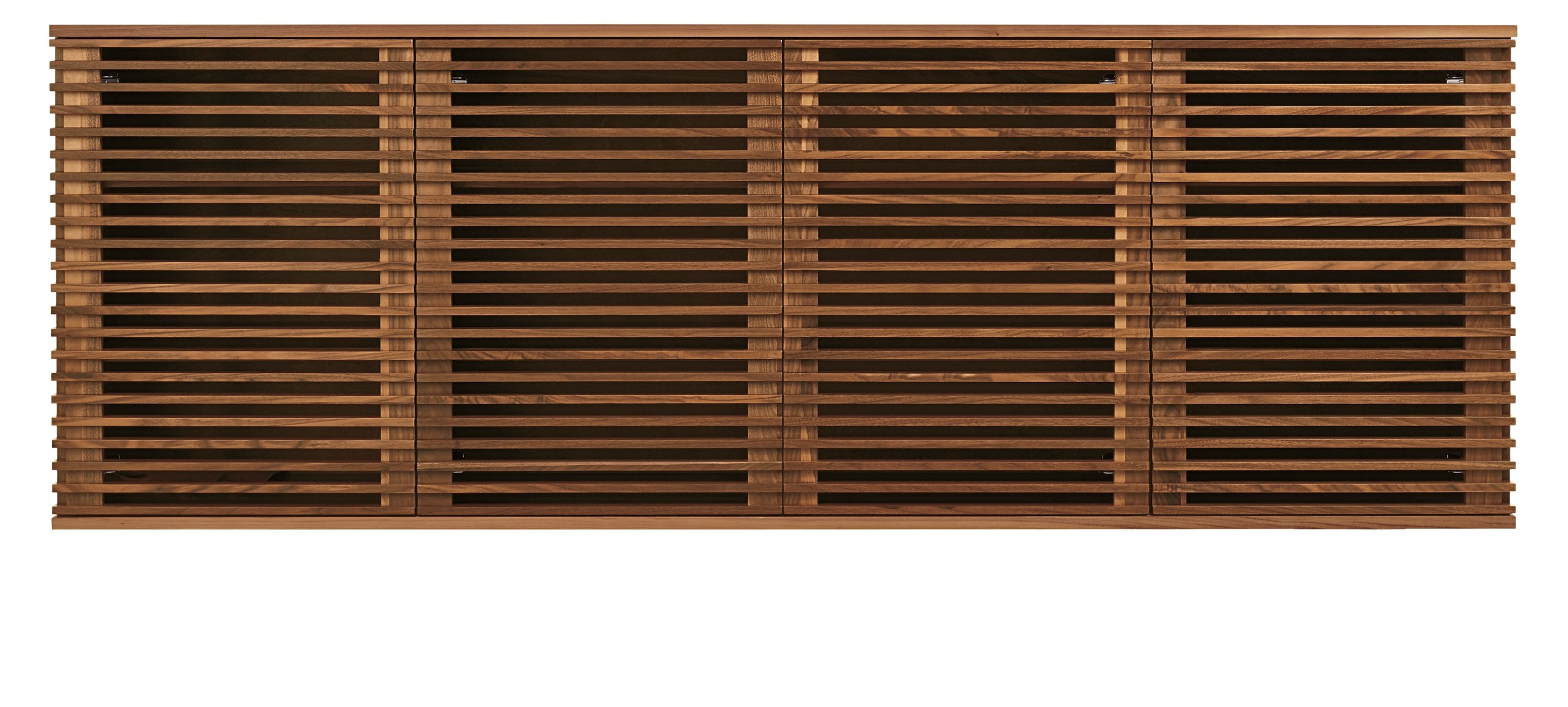 An intricate rug contrasts with the smoothness of the modern round table, which coordinates with the black accents throughout the rest of the room.