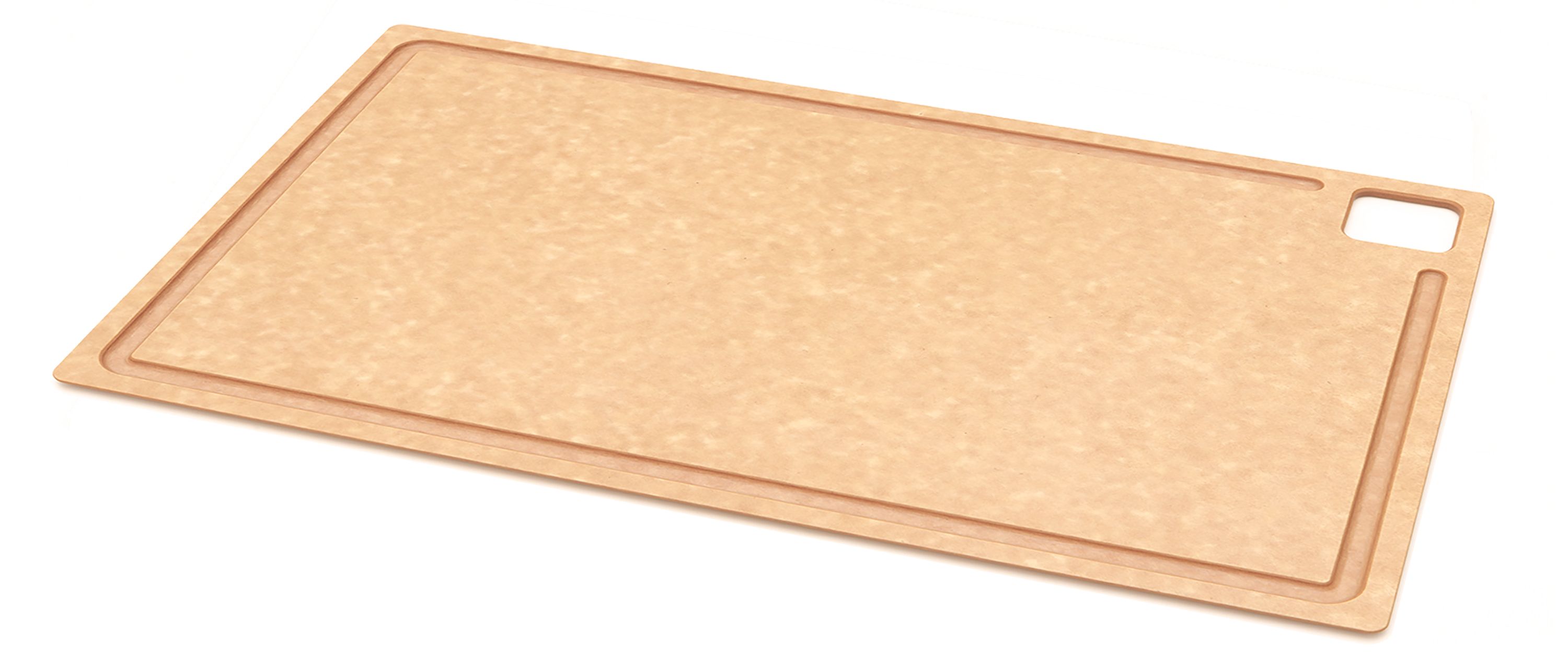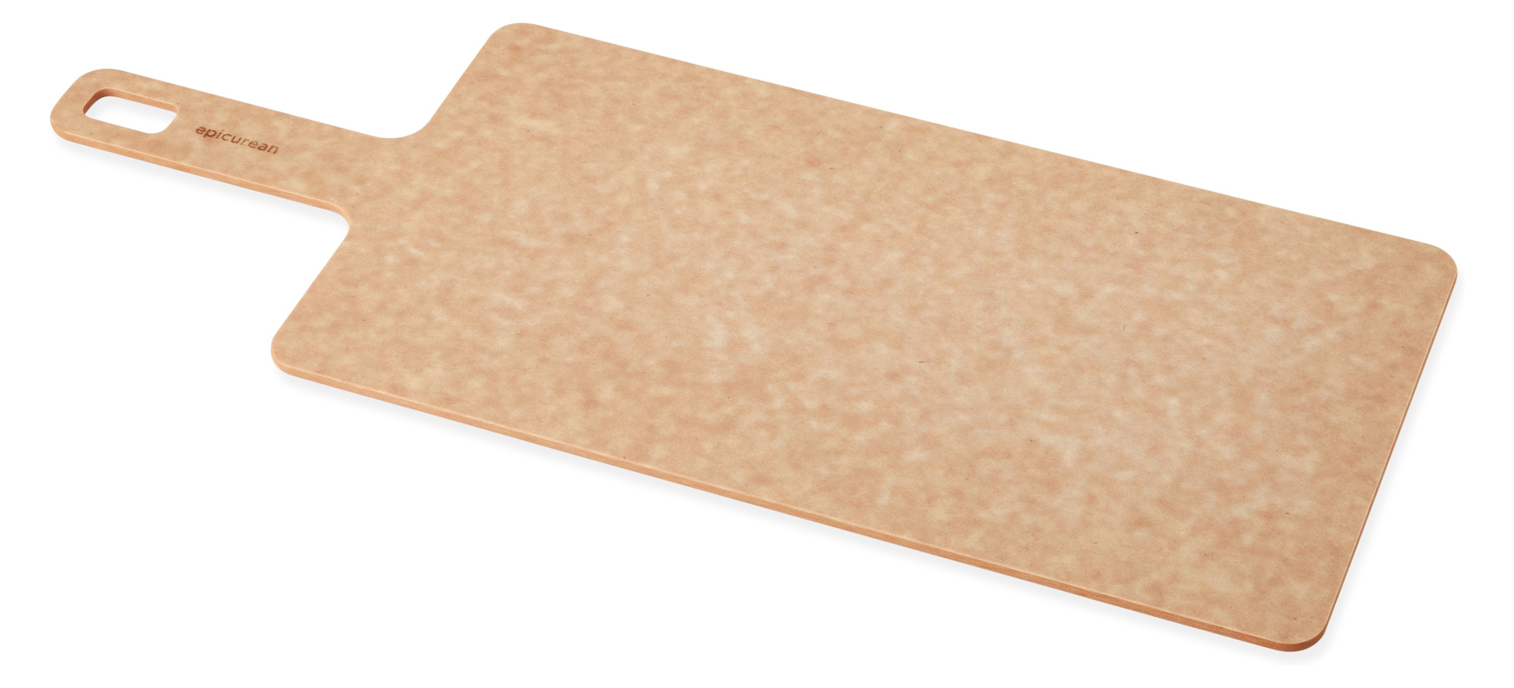 These easy-care cutting boards are made from a durable paper composite. The material is extremely knife-friendly and dishwasher-safe. Crafted by Wisconsin artisans, these boards are made for daily use and will acquire a patina over time. Plus, you can write on it with chalk for cheese boards.