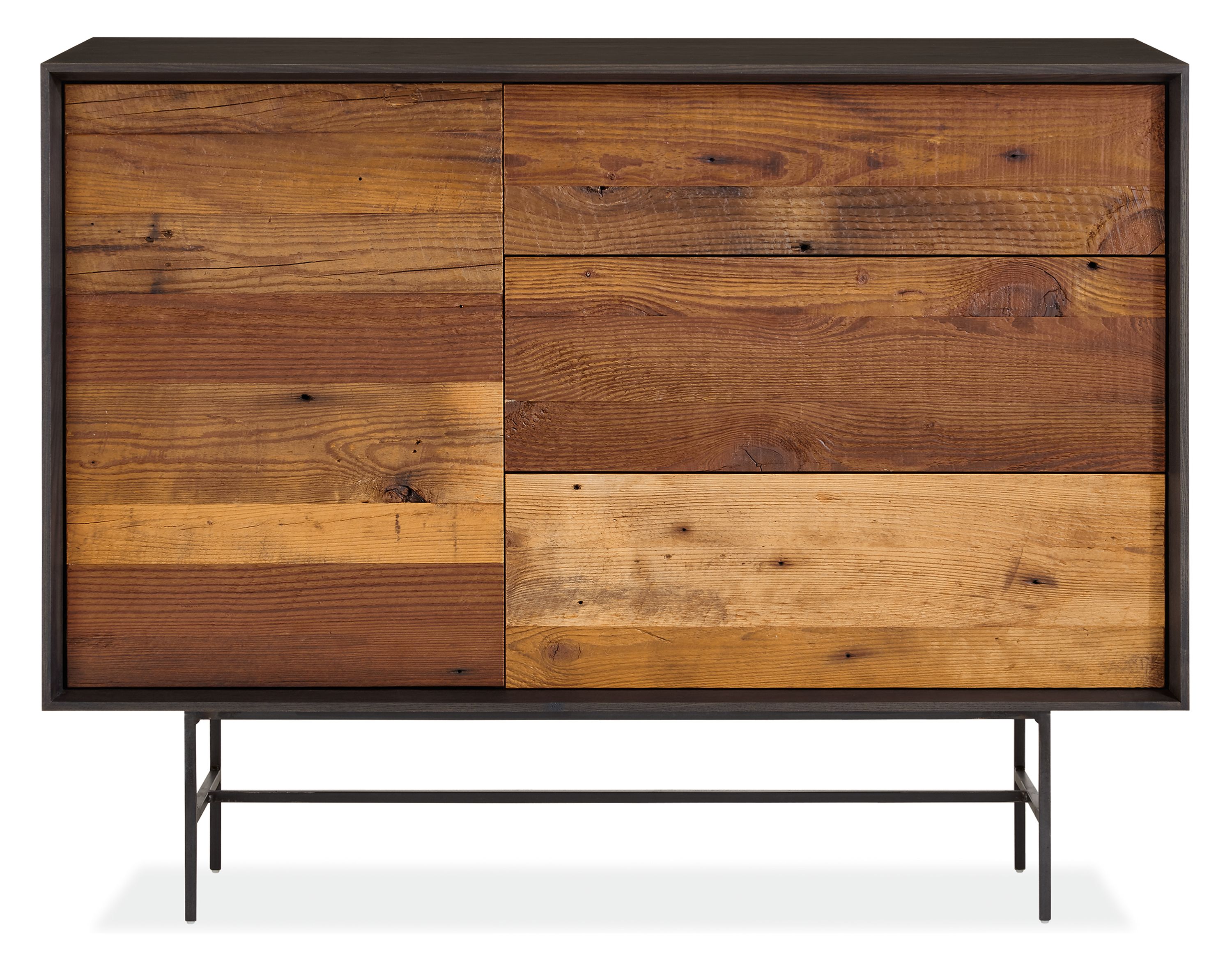 Born from our partnership with the USDA Forest Service and the city of Baltimore, the McKean storage cabinet is a beautiful example of sustainability in action. We’ve reclaimed wood that would have otherwise been taken to a landfill to create truly unique pieces of sustainable furniture for your home. The pine for this cabinet is reclaimed from roof decking of row houses in Baltimore, with some of the wood panels dating back to the 1800s. The cabinet features push-to-open drawers and is slightly set back in a solid wood frame. Combined with a natural steel base for a sleek and modern look, McKean is one of a kind and brings a story to your home you’d be proud to share.