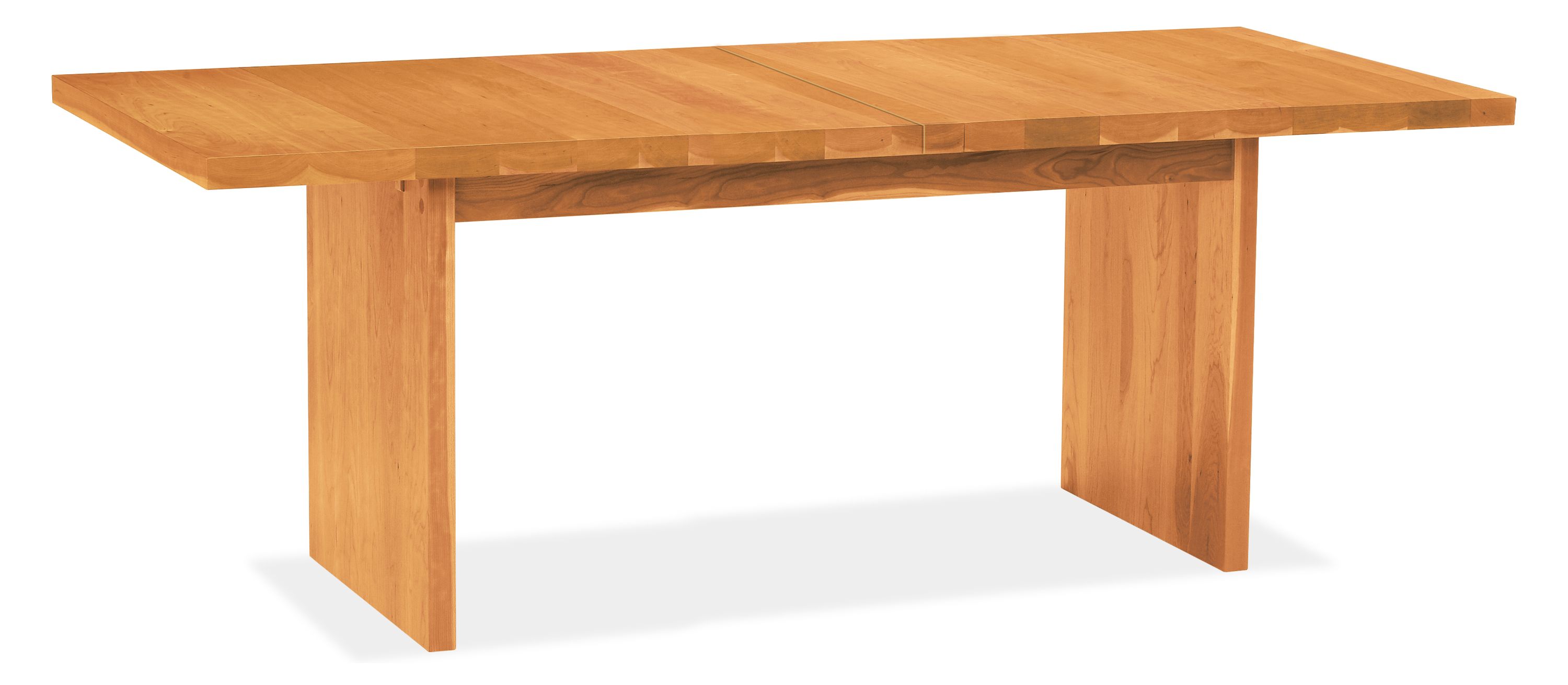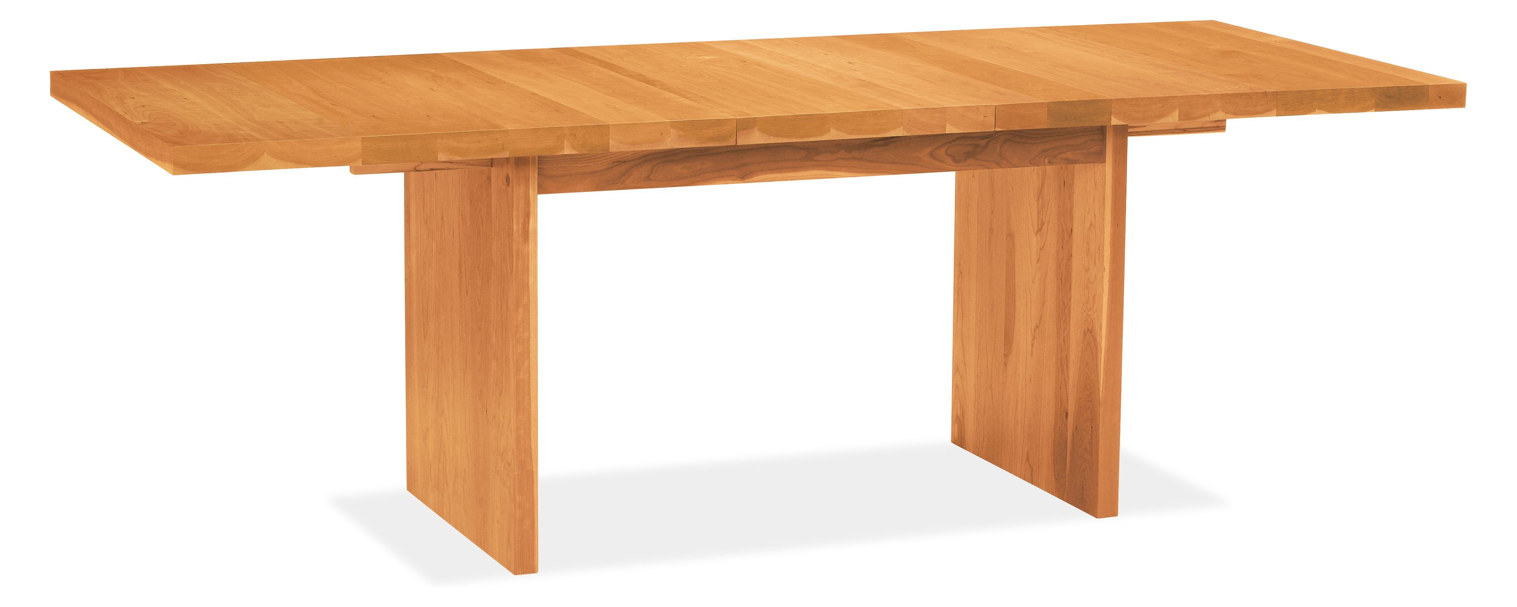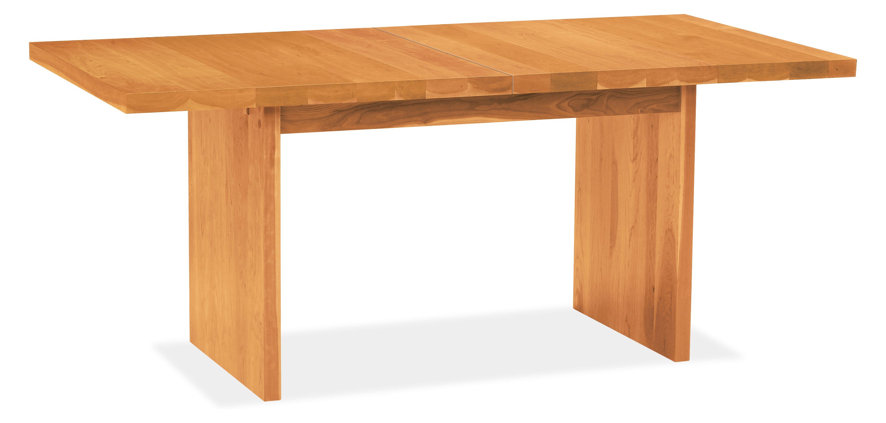 Celebrate the natural beauty of wood with our Corbett modern dining table. Handcrafted by artisans in Vermont, this table is made from thick, solid wood panels and adds a clean, substantial presence to your room. The design is simple with a generous overhang on the ends of the table and a narrower apron on the sides. The extension mechanism works smoothly and can be opened easily by one person.