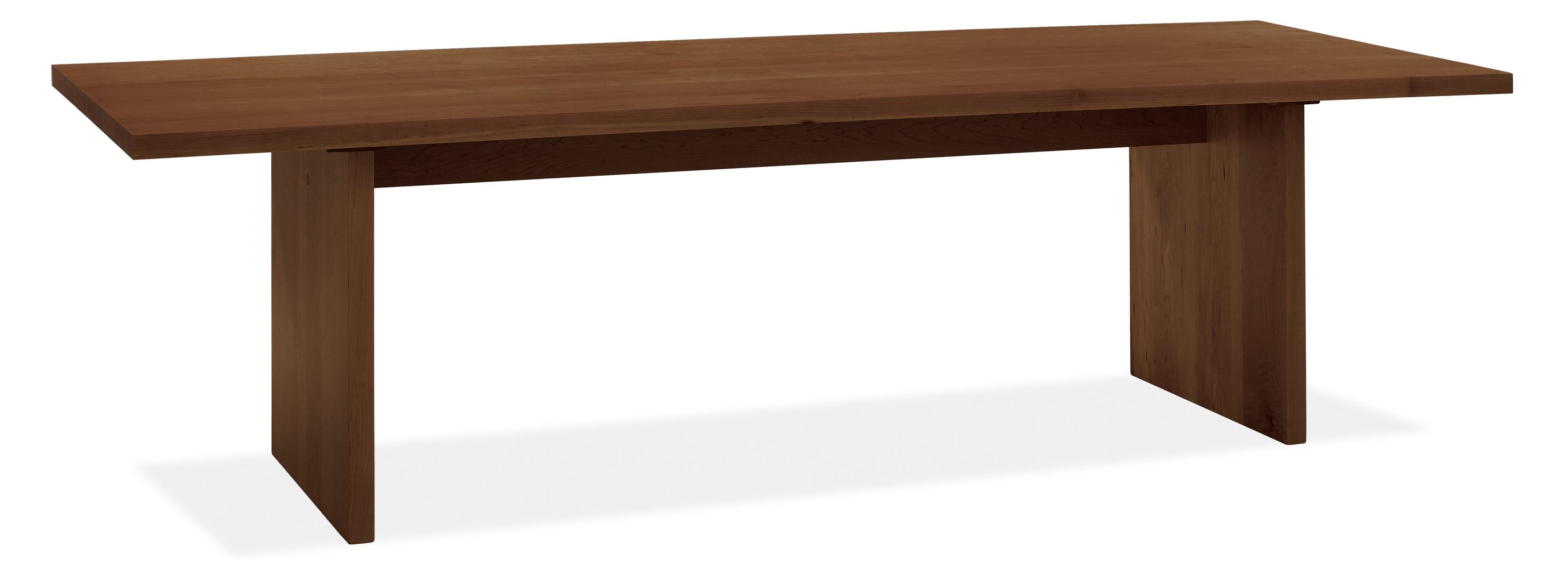 Celebrate the natural beauty of wood with our Corbett modern dining table. Handcrafted by artisans in Vermont, this table is made from thick, solid wood panels and adds a clean, substantial presence to your room. The design is simple with a generous overhang on the ends of the table and a narrower apron on the sides.