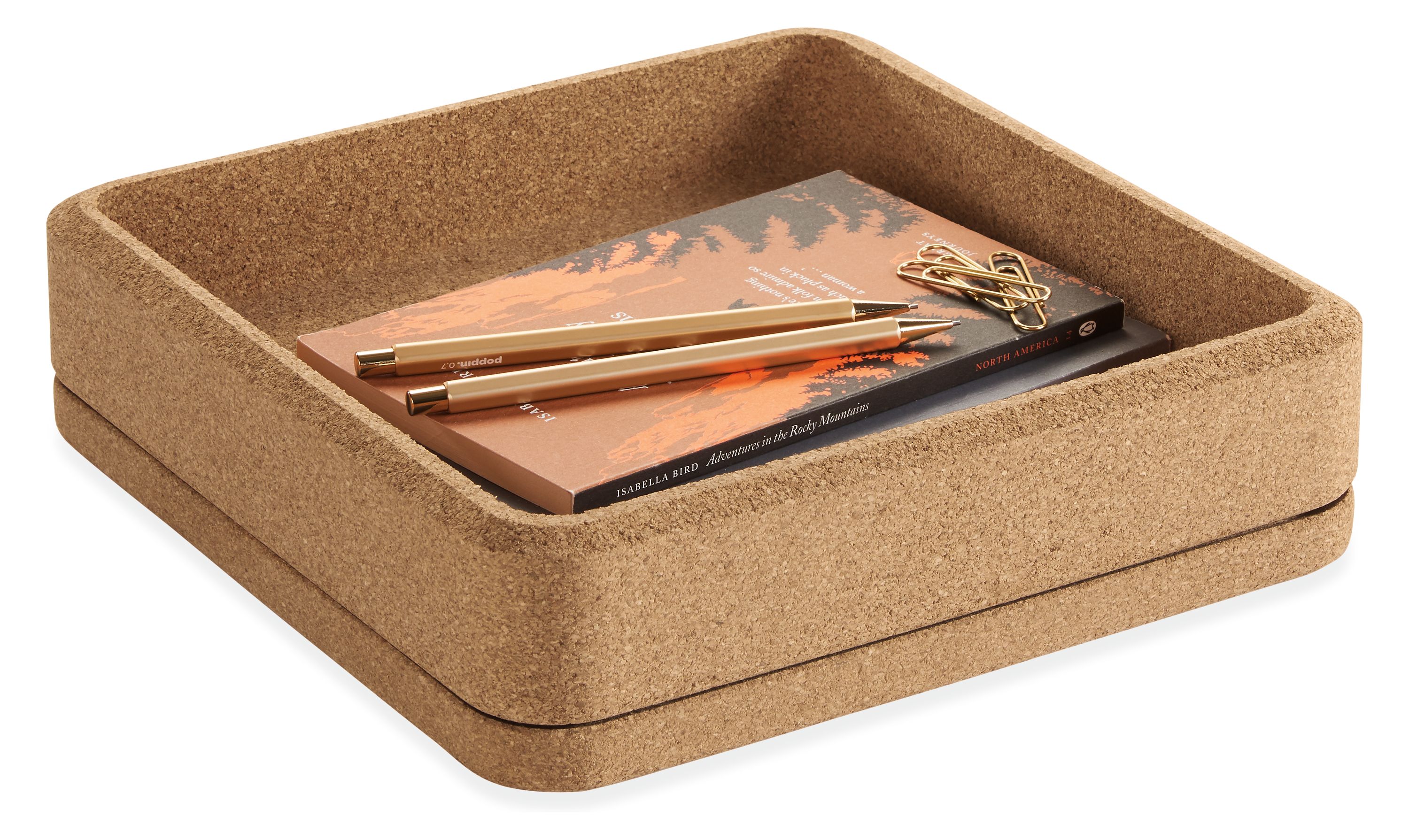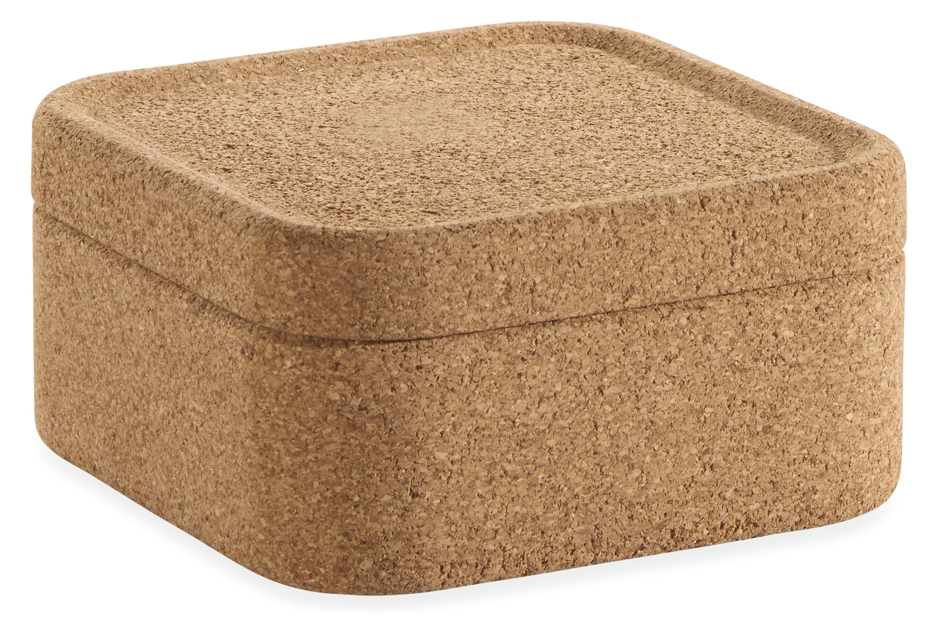 - Includes: 1) each 10"w 10"d; 5"w 10"d; & 5"w 5"d cork storage boxes