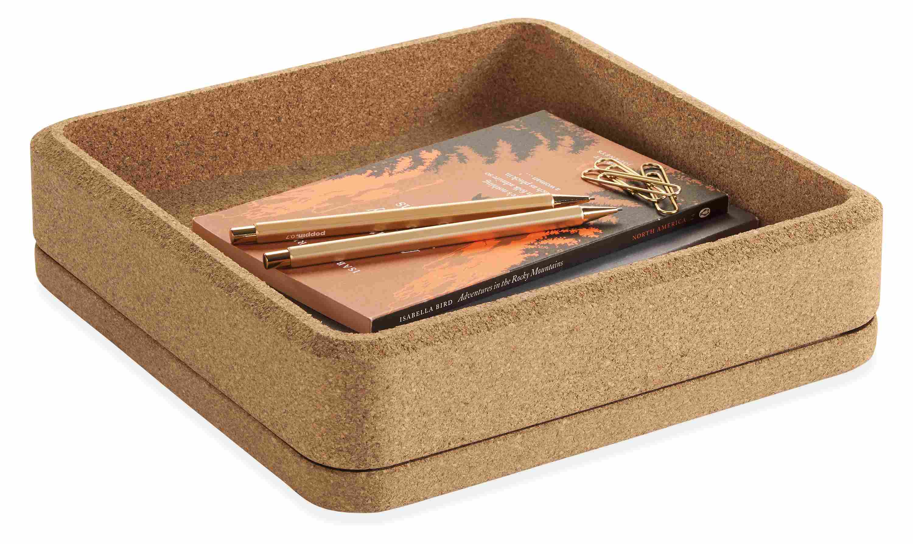Each Lync box is made in Vermont from Portuguese cork that is harvested from cork oaks, which aren’t harmed by having their bark removed. This beautiful material accentuates the modern silhouette of the box and makes for a soft landing place. The beveled edge on the top and bottom make it easy to stack these boxes and keep them aligned.