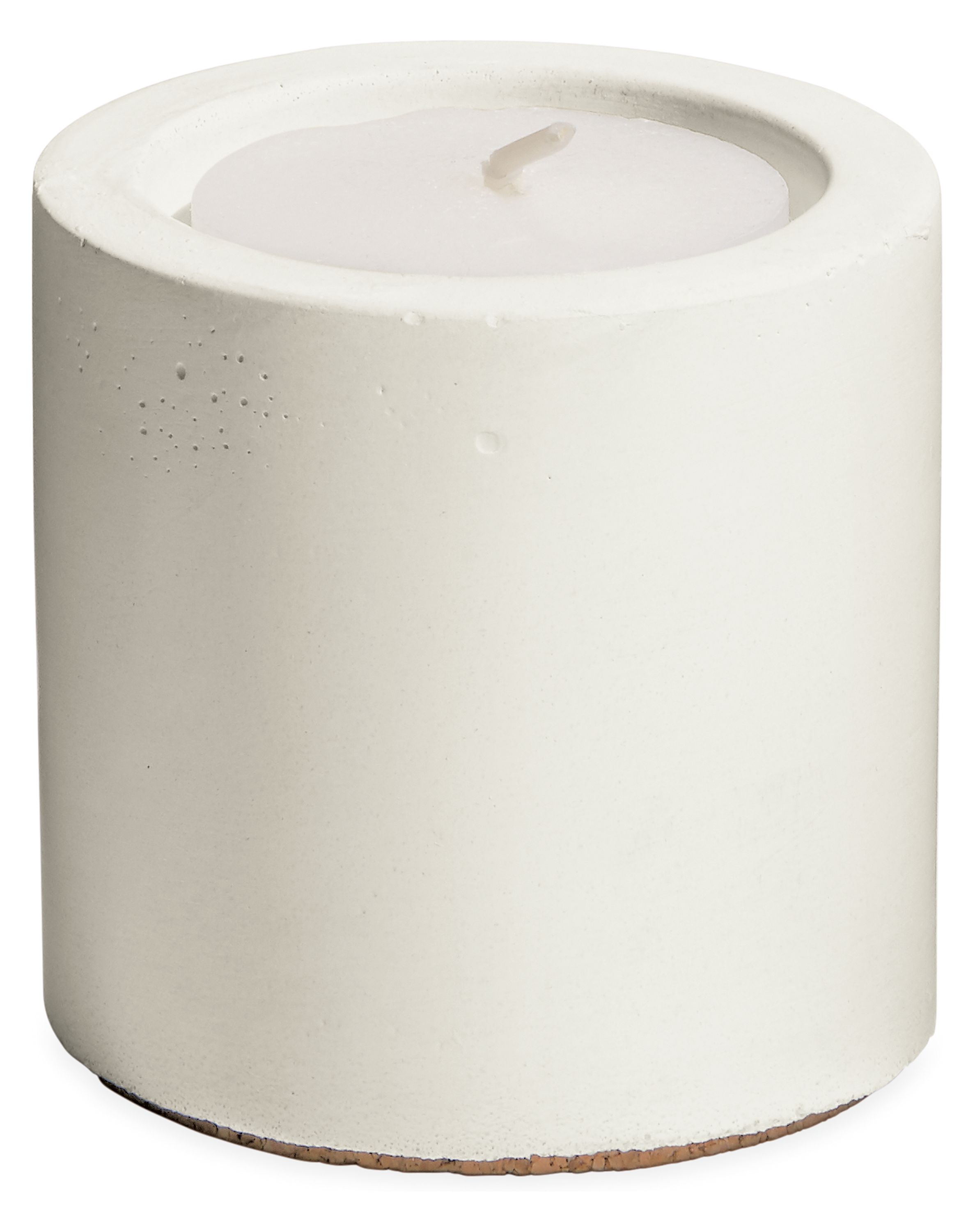 These modern votive candle holders are made from a special concrete formula that feels uniquely smooth. The proprietary recipe, developed by a family-run company in South Carolina, includes recycled stone dust to help keep waste out of landfills. Each candle holder is burnished with a sealer to protect the finish and has a cork bottom.