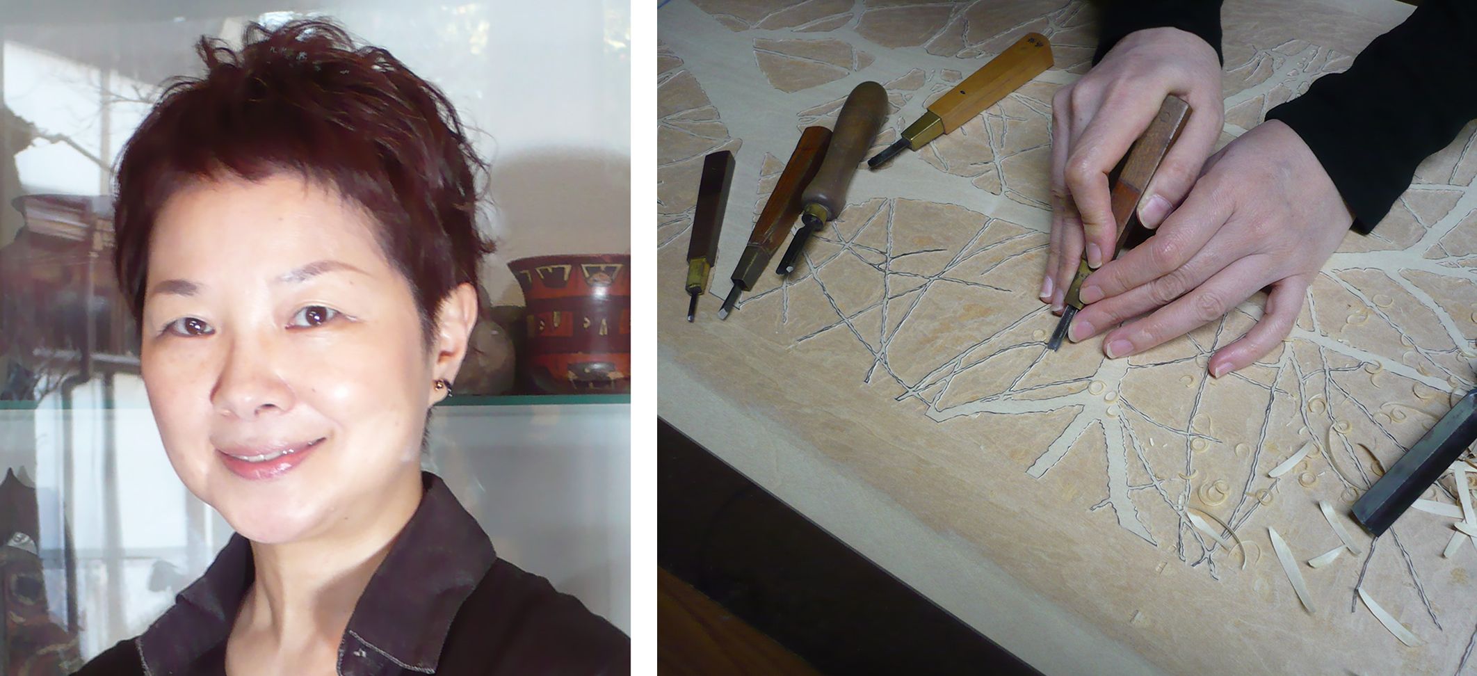 Inspired by nature around her in Japan, Ayomi Yoshida creates these unique prints by carving the images into wood blocks (one for each color), then hand block-printing the images.