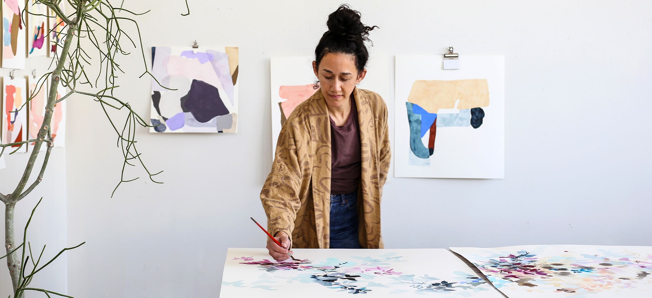Artist Jorey Hurley combines her fresh perspective on layering textures with subtle line work and color.