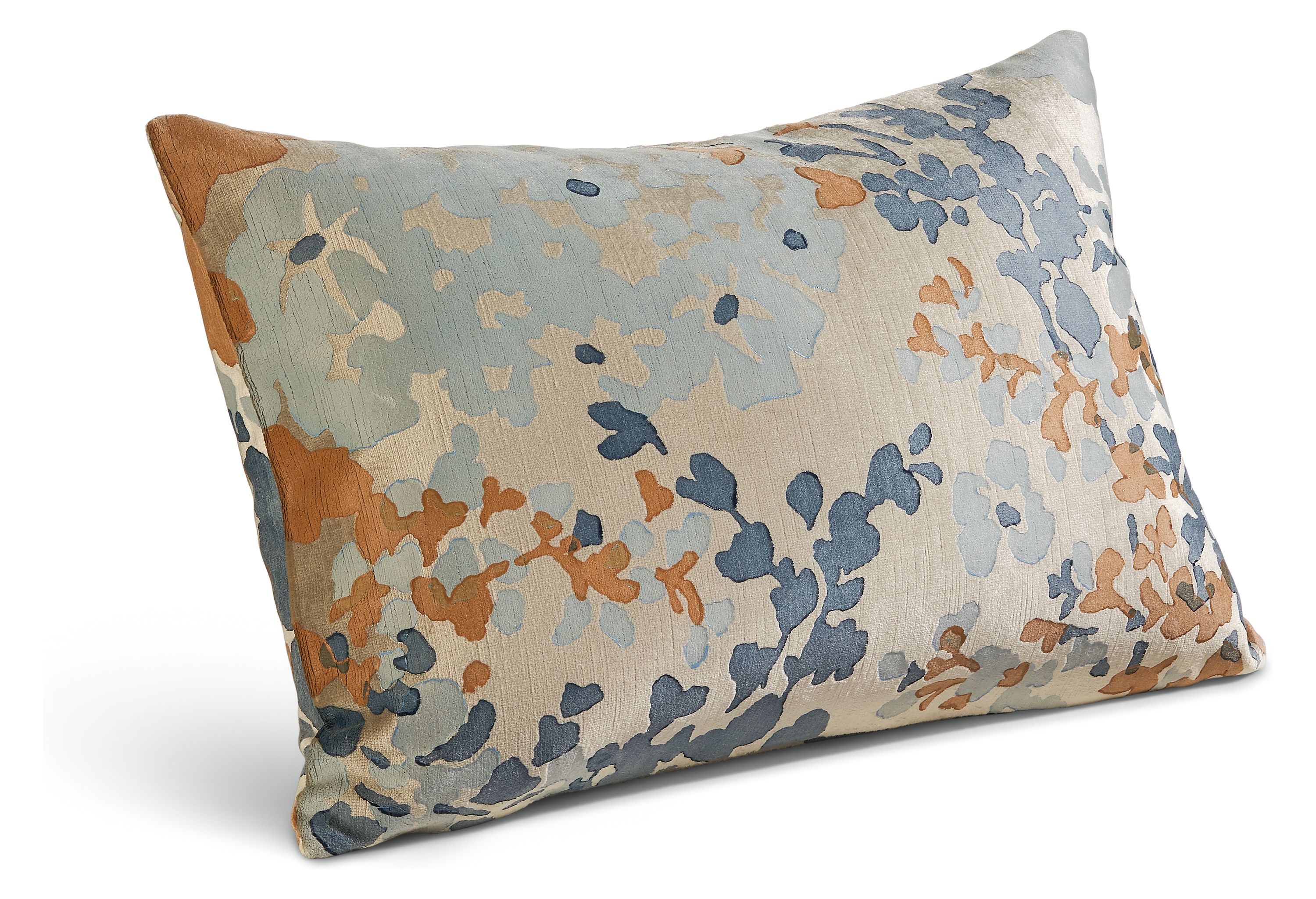Hand block-printed by the artisans at Galbraith & Paul, a field of flowers in muted tones is scattered across this modern velvet throw pillow.