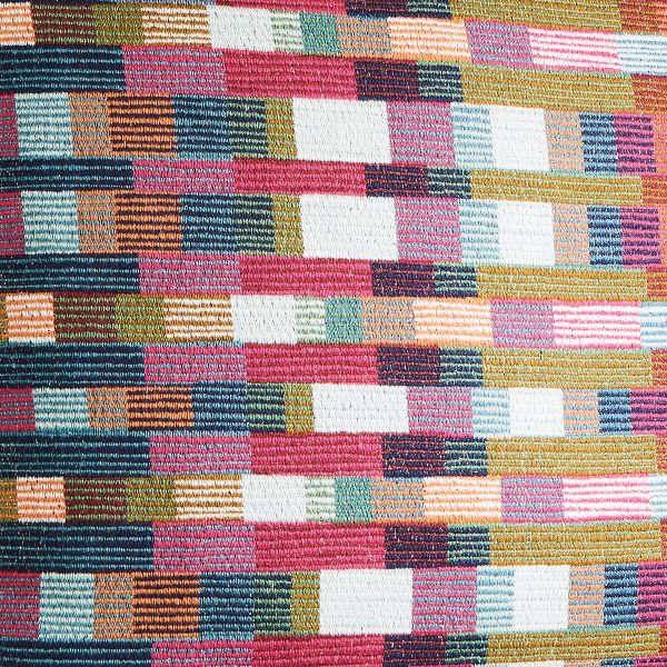 A geometric multicolor pattern crisscrosses this modern pillow, adding a vibrant visual depth to your room.