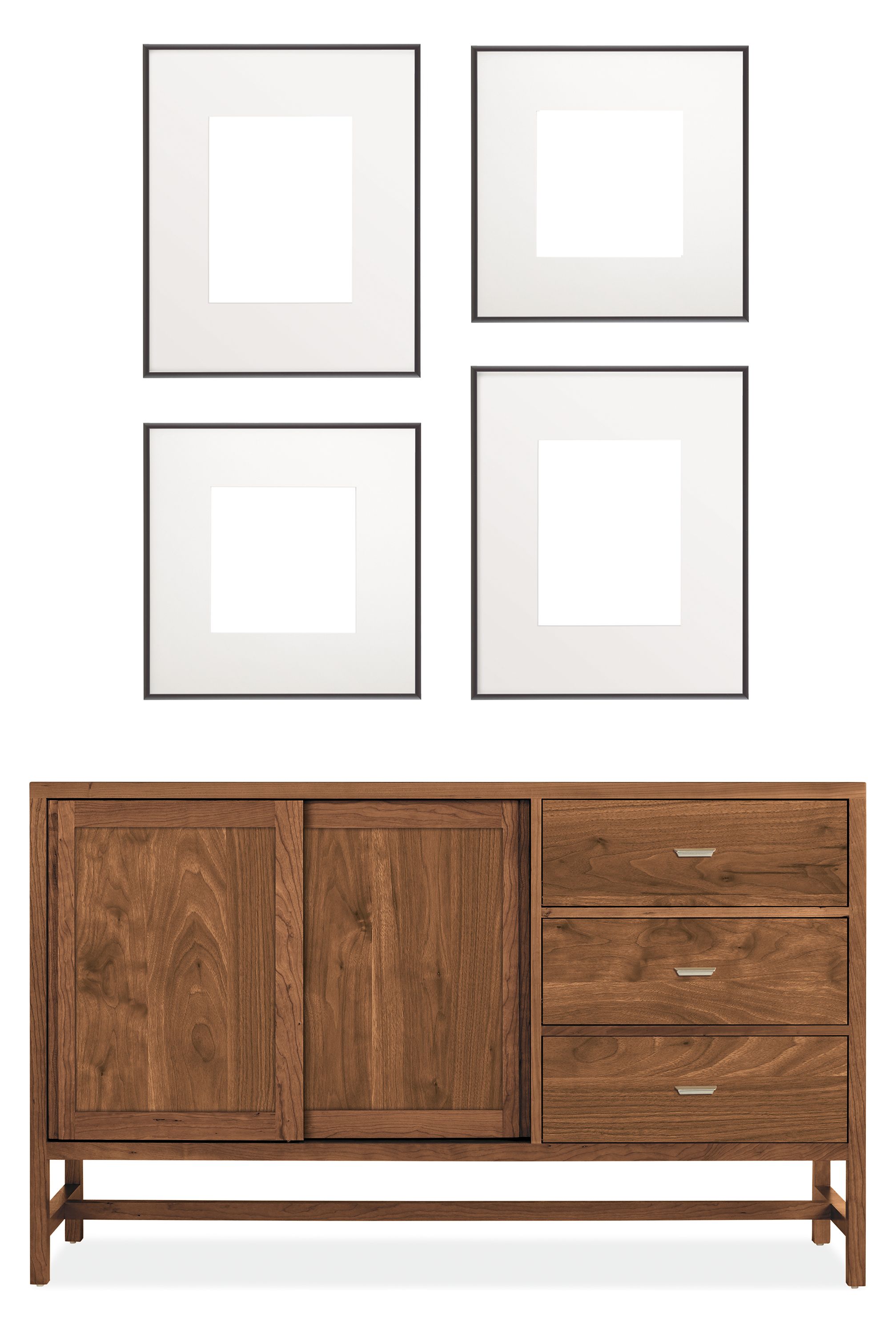 Get everything you need to create a modern frame wall. This set of Profile picture frames includes four frames and a hanging template to easily create a mixed grid layout. Our Profile frames are expertly made by hand by a family-owned company in Ohio who uses premium materials to give your art a museum-quality home.